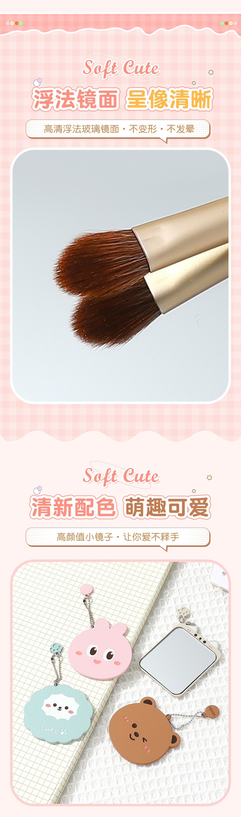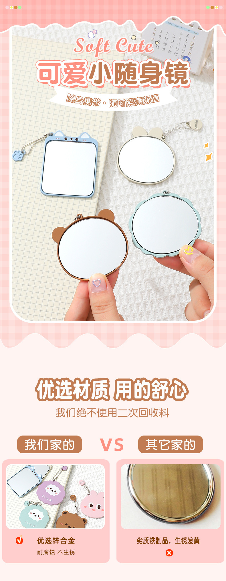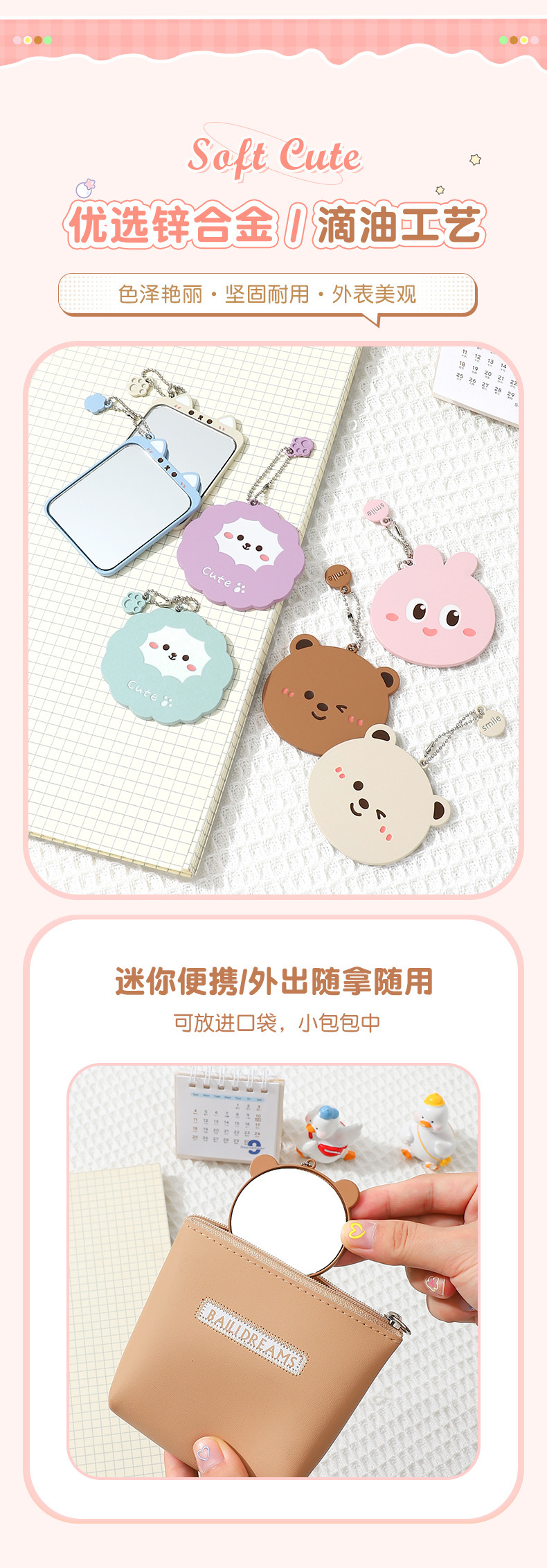 bao bao bao alloy small mirror cartoon style cute makeup mirror women's student portable small portable iron mirror 中文版