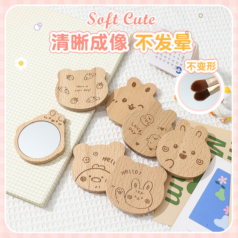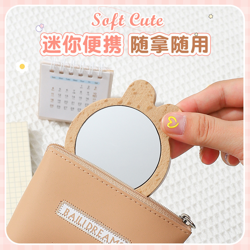 bao bao bao cartoon mini beech mirror portable and cute small mirror portable mirror student lady handheld makeup mirror 中文版