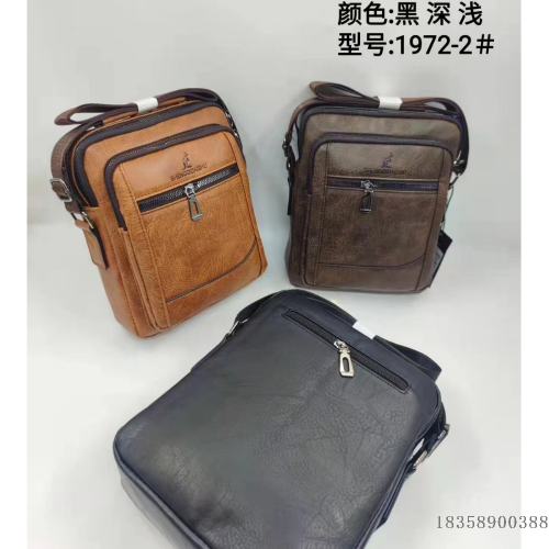 pu men's business retro messenger bag large capacity men's bag shoulder bag casual portable briefcase cross-border 中文版