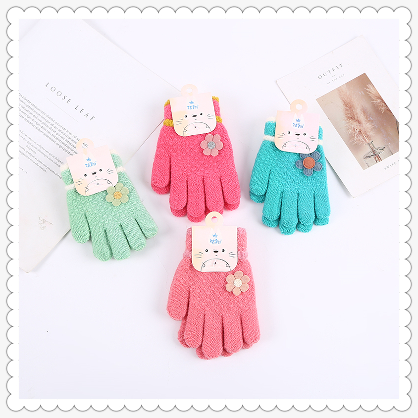 women's winter warm thickened student writing five-finger knitted wool cute gloves