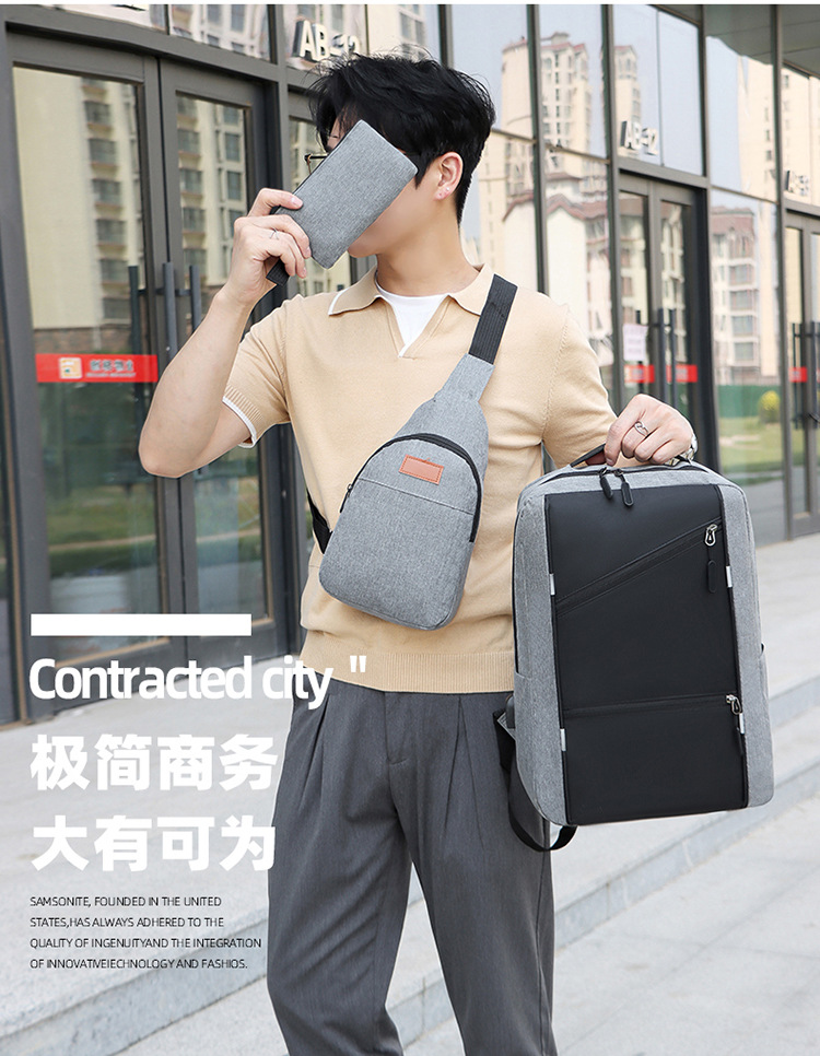 junshuai three-piece backpack usb rechargeable computer bag multifunctional student large capacity bag