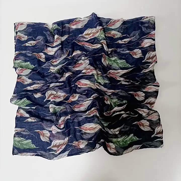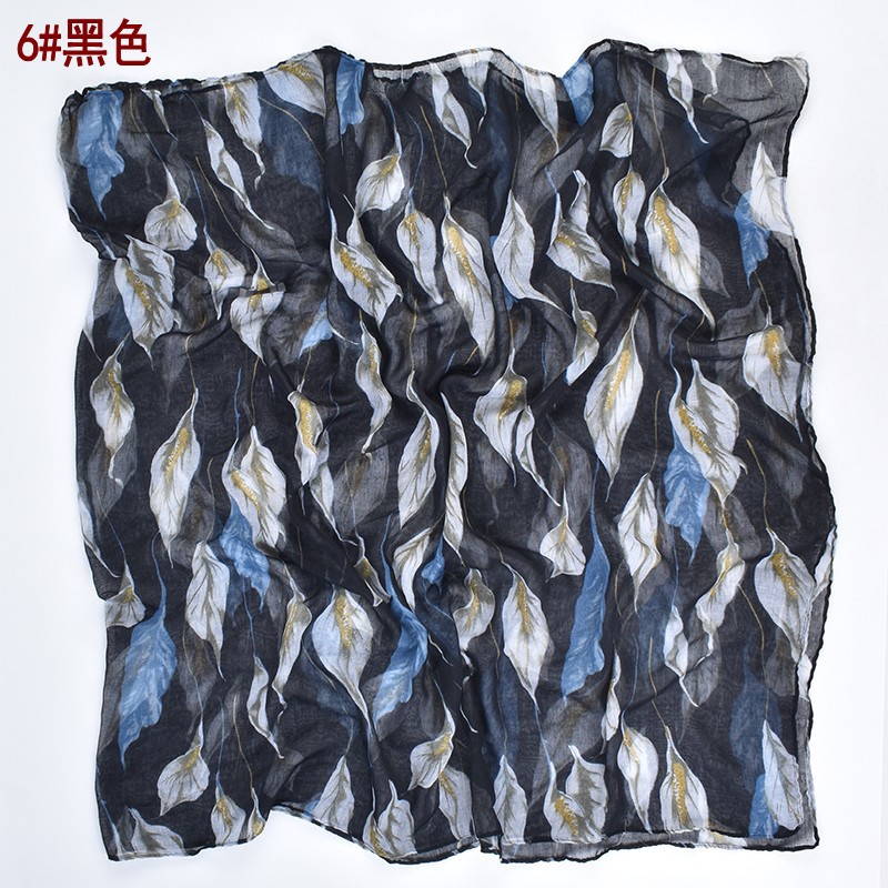 2023 Autumn and Winter New French Elegant Leaves Scarf High Quality Voile Printing Women's Shawl Scarf Headscarf Wholesale