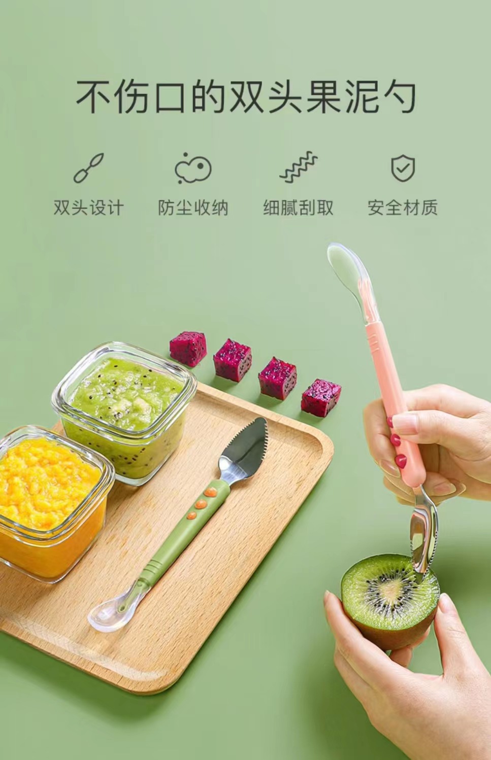 fruit puree spoon green