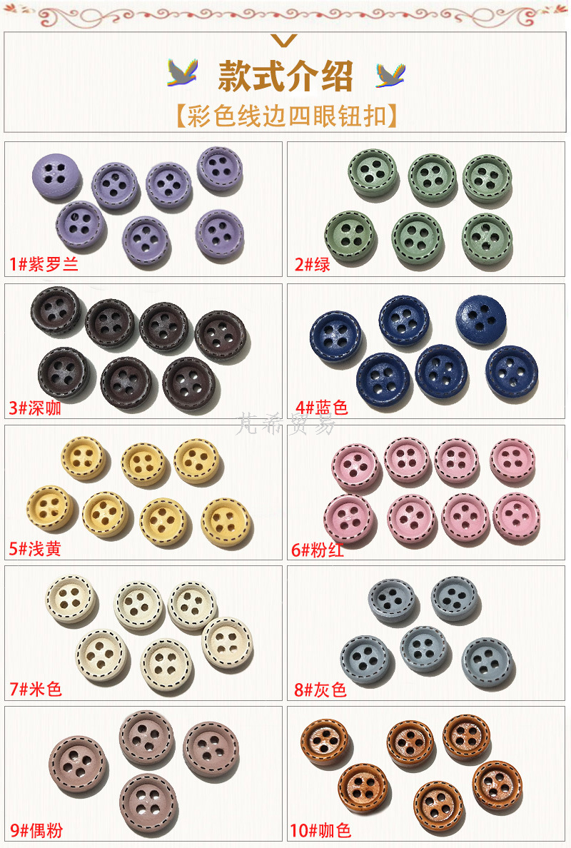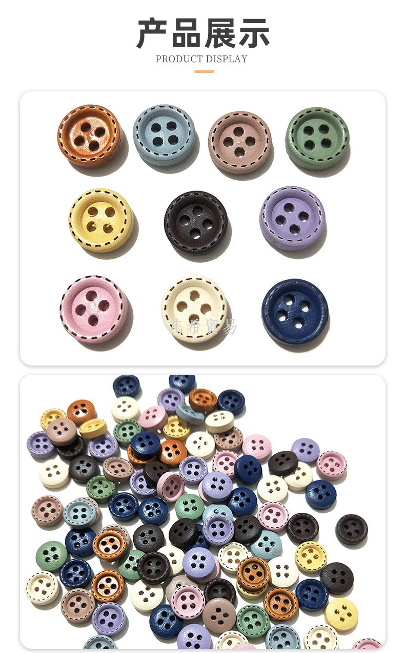 Hole Wooden Shirt Buttons Wholesale Children's Cartoon Printing DIY 4 Holes Button Wood Color Buttons 中文版