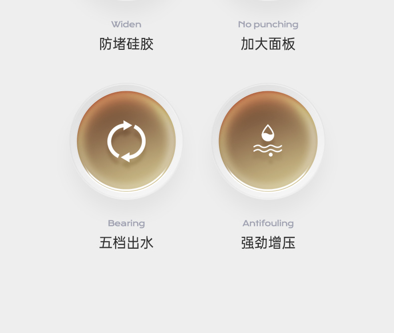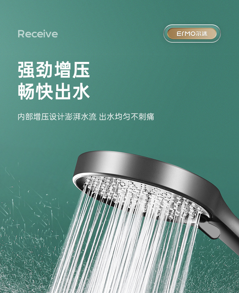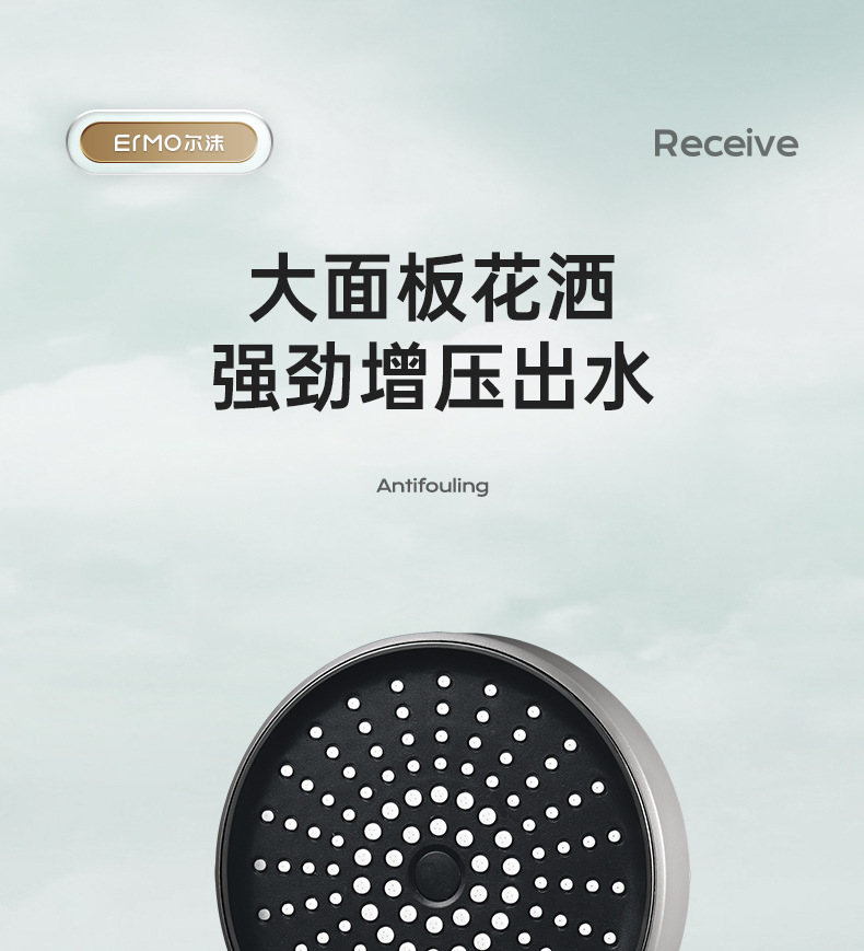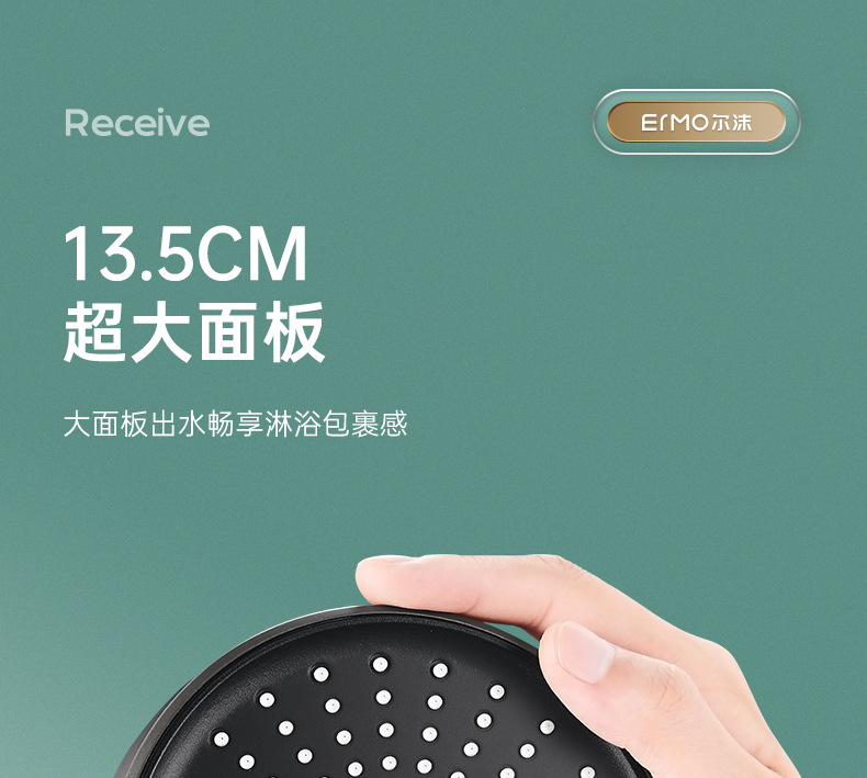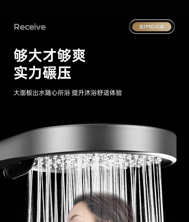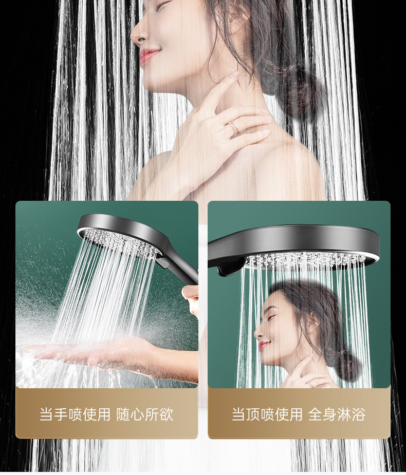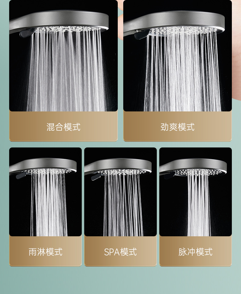 five-speed water outlet ◆ 13.5cm oversized panel ◆ silver electroplated