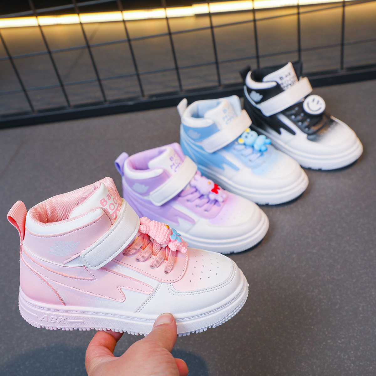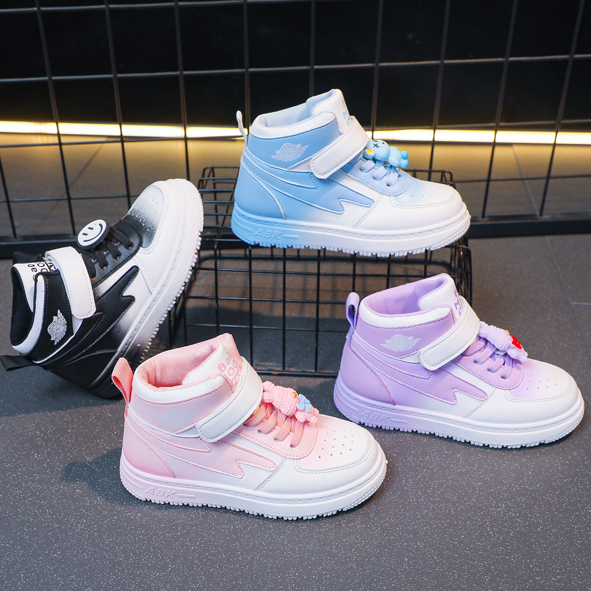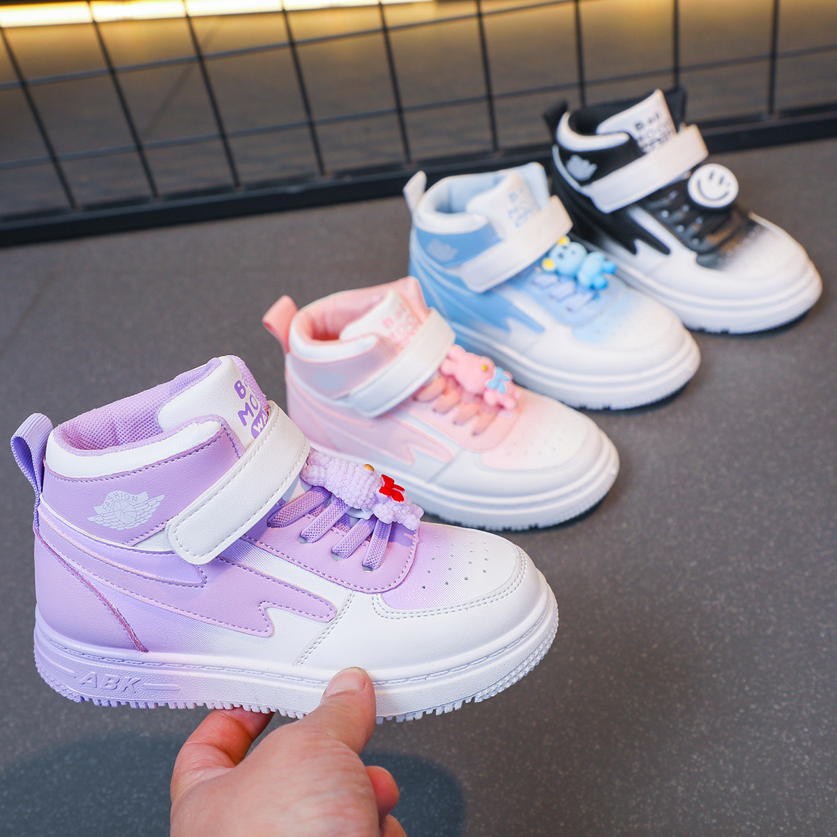children's sports shoes spring new girls casual all-match board shoes primary school students non-slip soft bottom high-top shoes 中文版