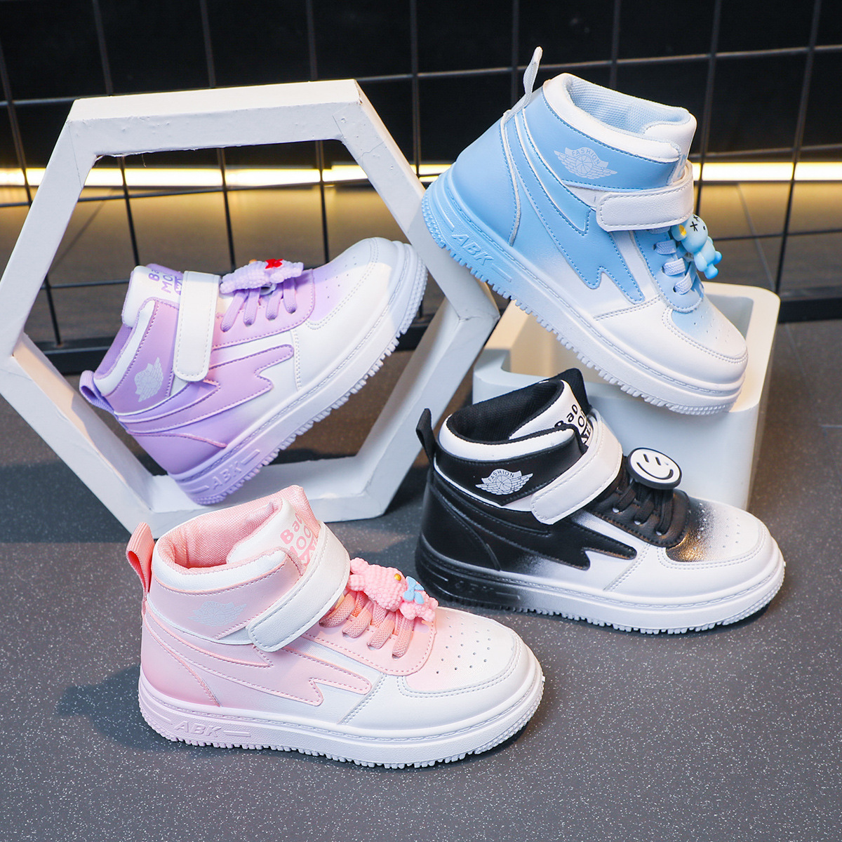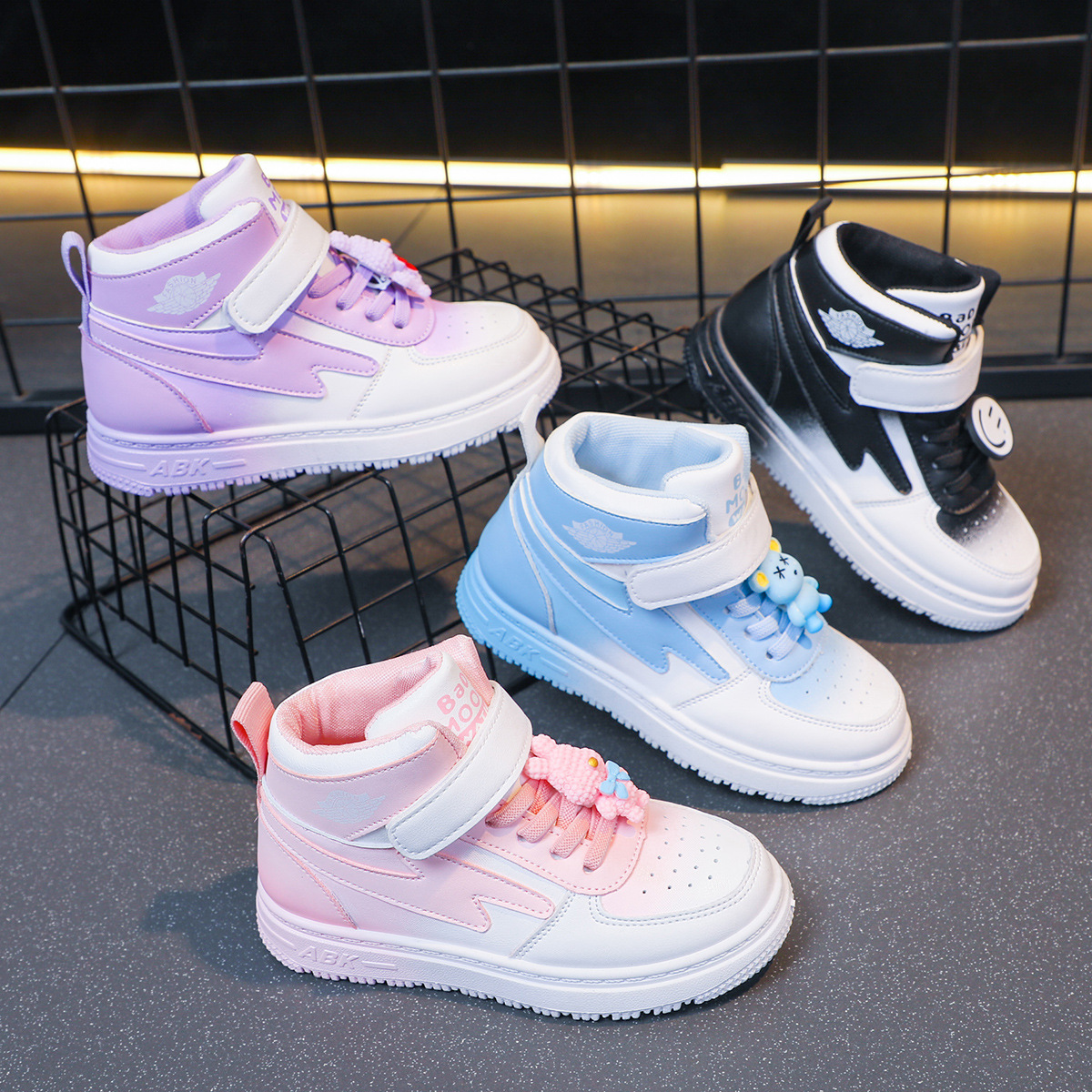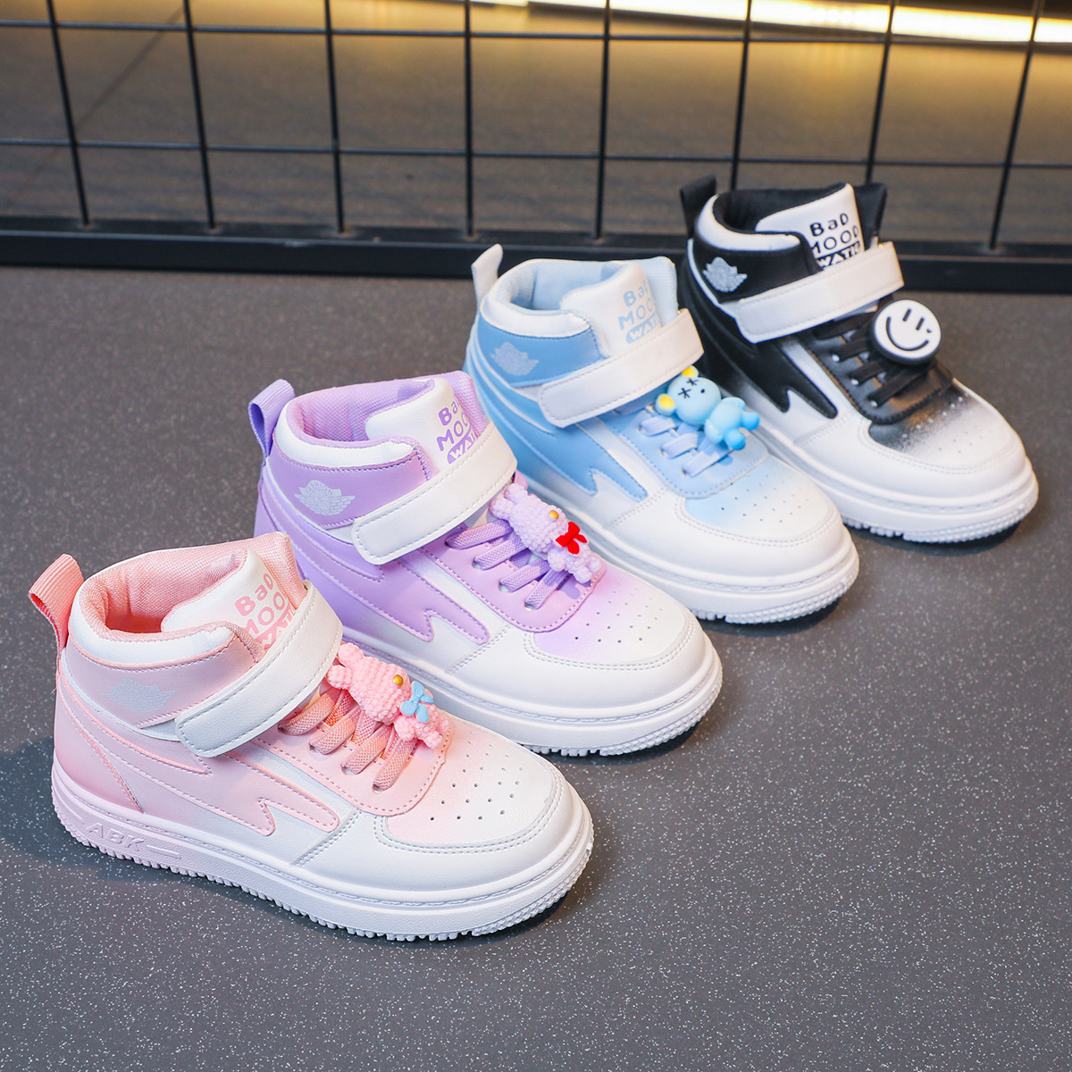 children's sports shoes spring new girls casual all-match board shoes primary school students non-slip soft bottom high-top shoes 中文版