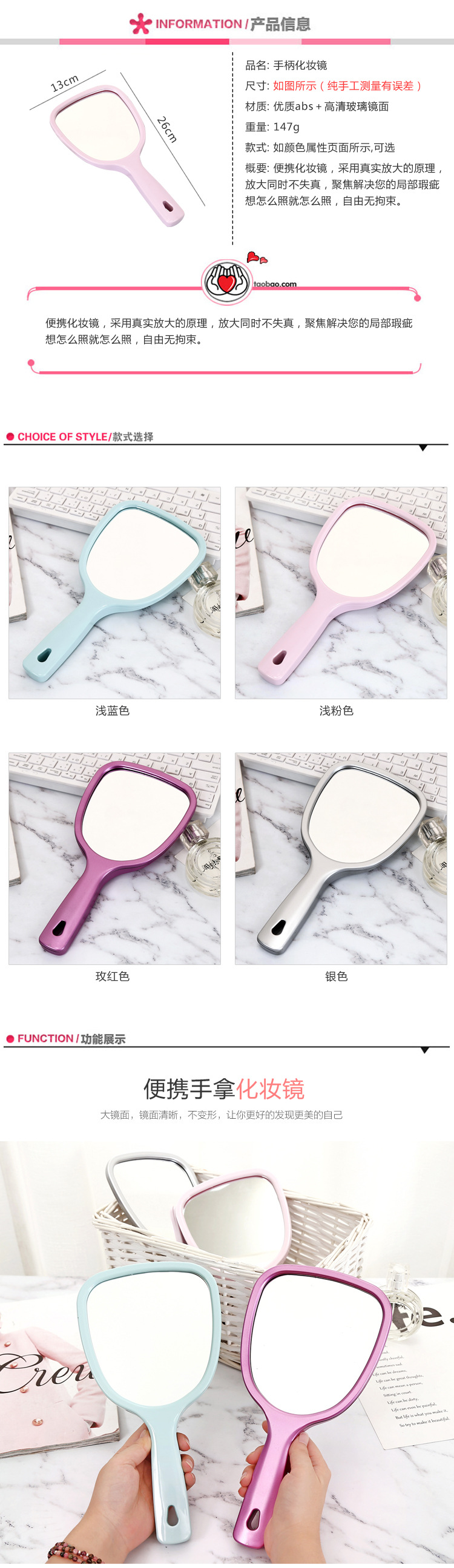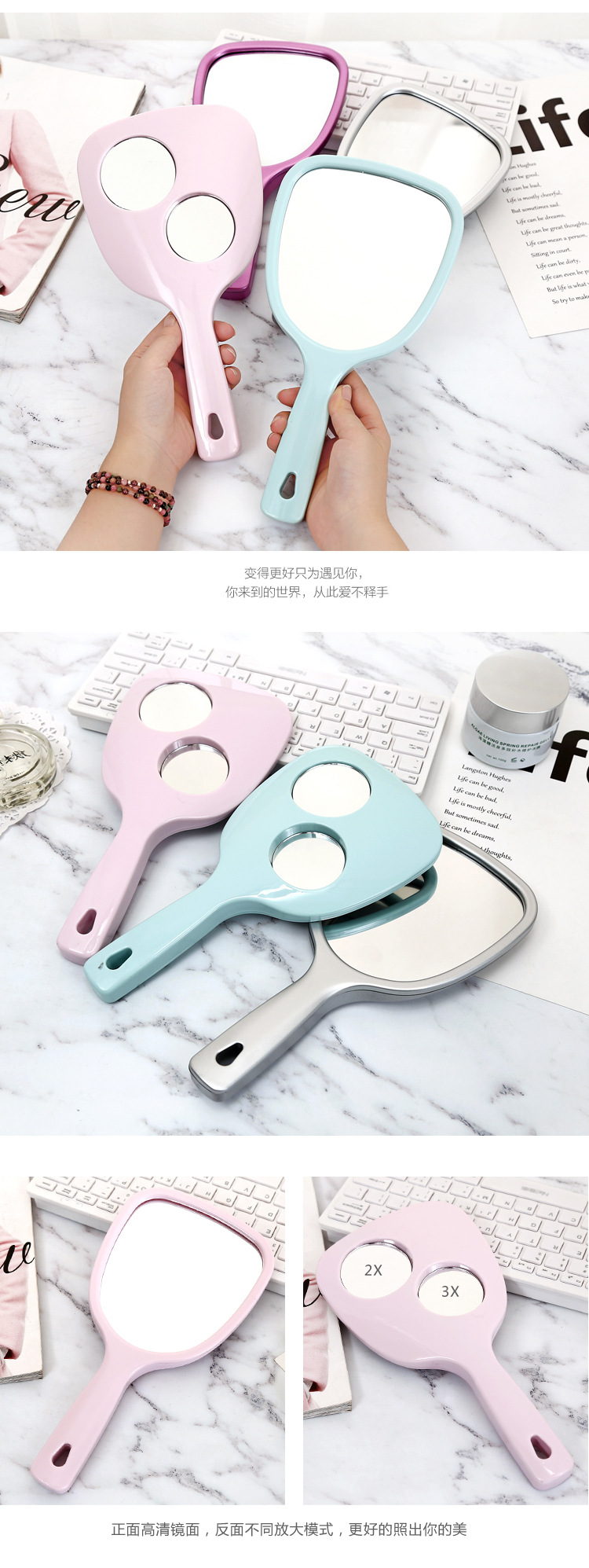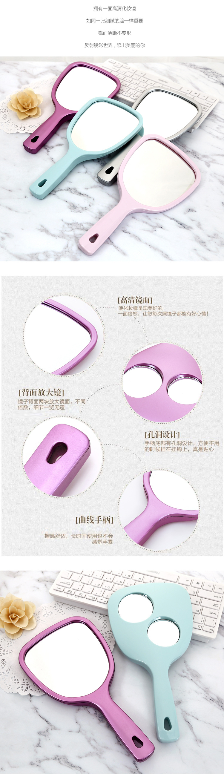 dormitory small makeup mirror mini-portable portable mirror small handheld hand-hold mirror beauty salon dressing mirror 中文版