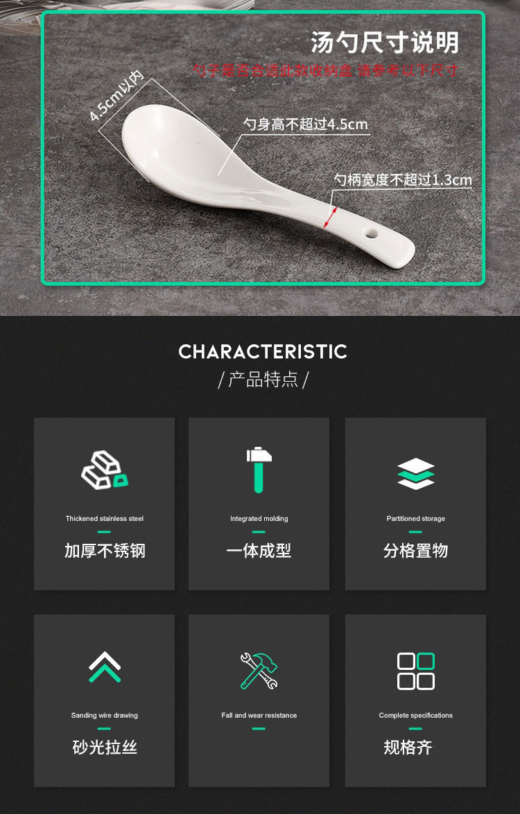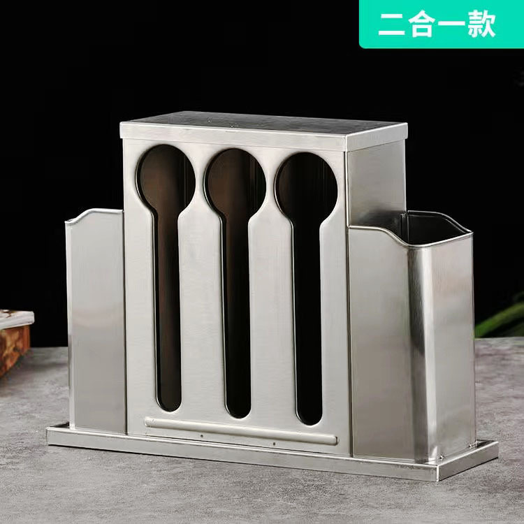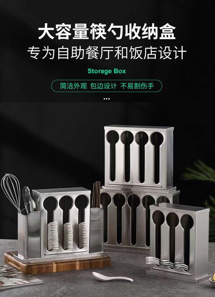 square stainless steel spoon storage box canteen fast food restaurant with lid restaurant chopsticks soup spoon storage container storage rack 中文版