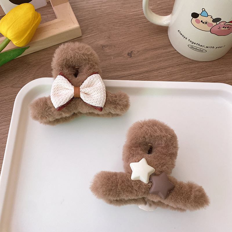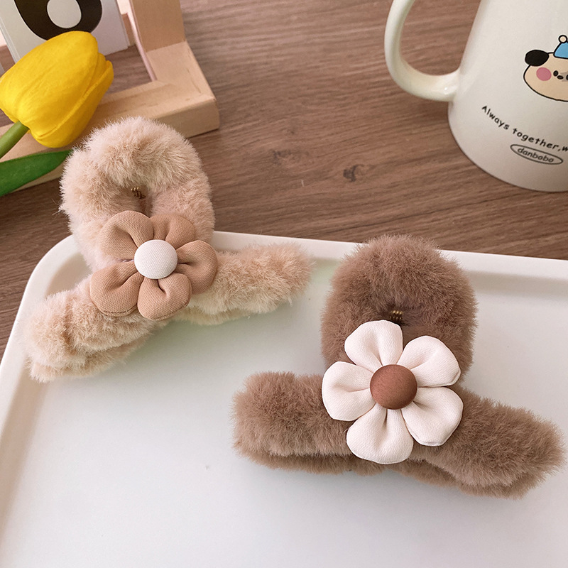 ● Autumn and winter milk coffee color medium size plush hair clip