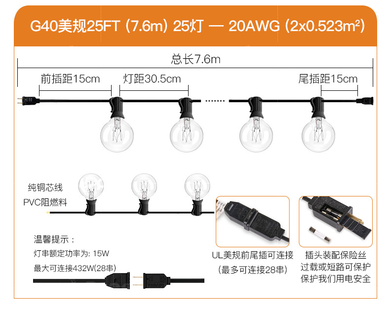 | tungsten wire 7.6 m 25 lights +2 standby bubbles 25ft | ¥46.8 | 9629 set available |