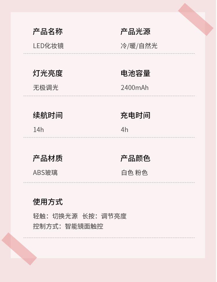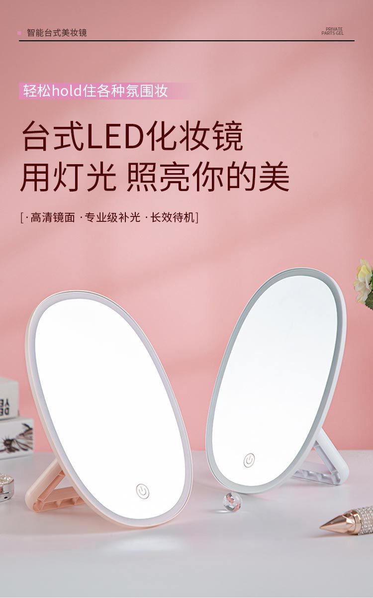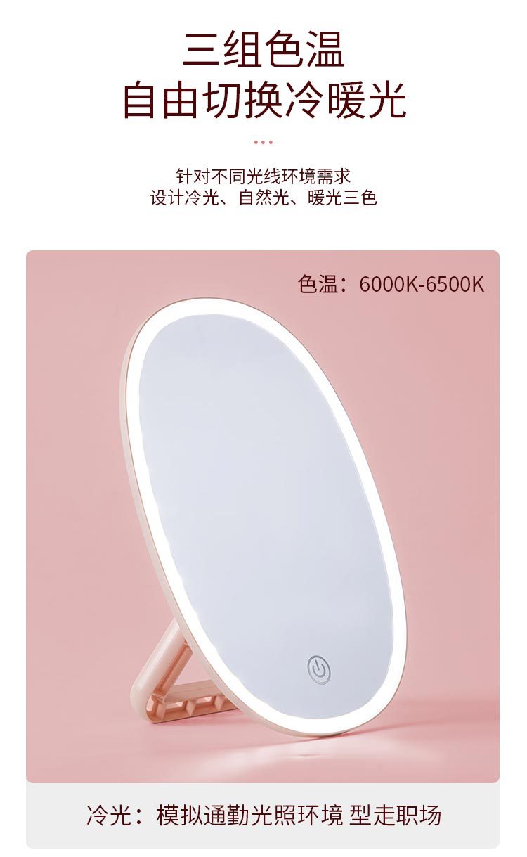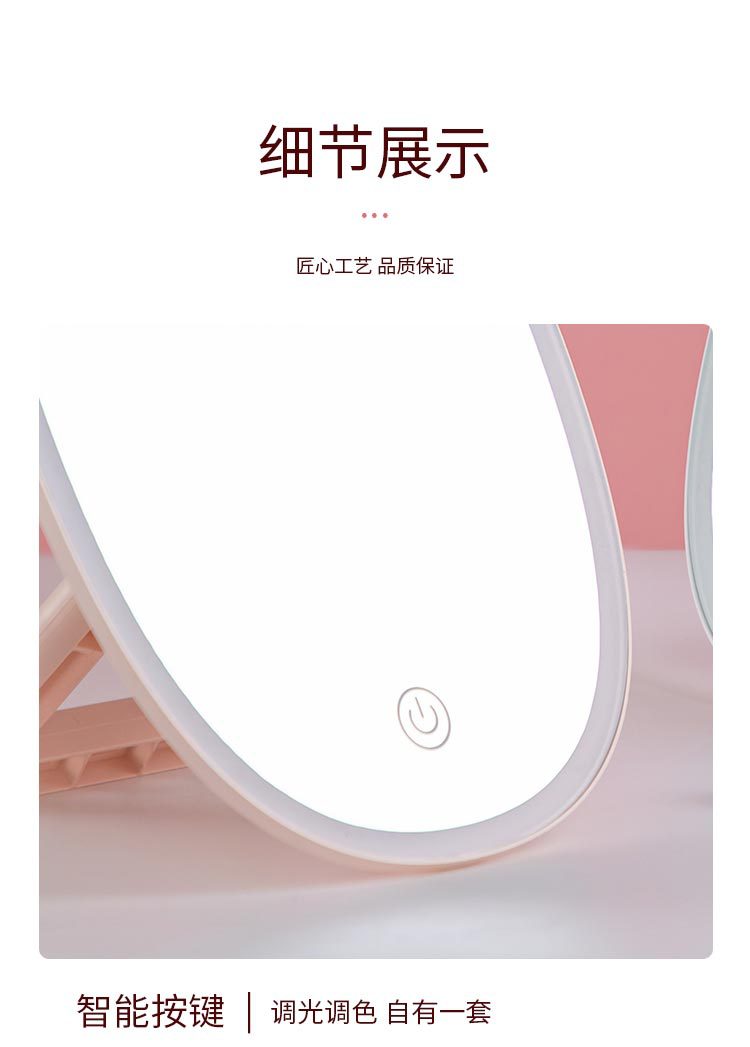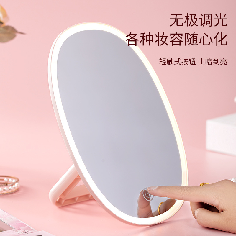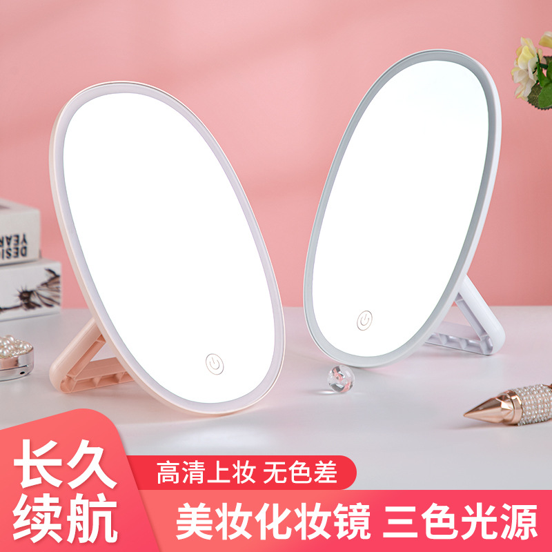Led Make-up Mirror Touch Switch Adjustable Three Colors Fill Light Mirror Desktop Folding Desktop Vanity Mirror Internet Celebrity Small Mirror