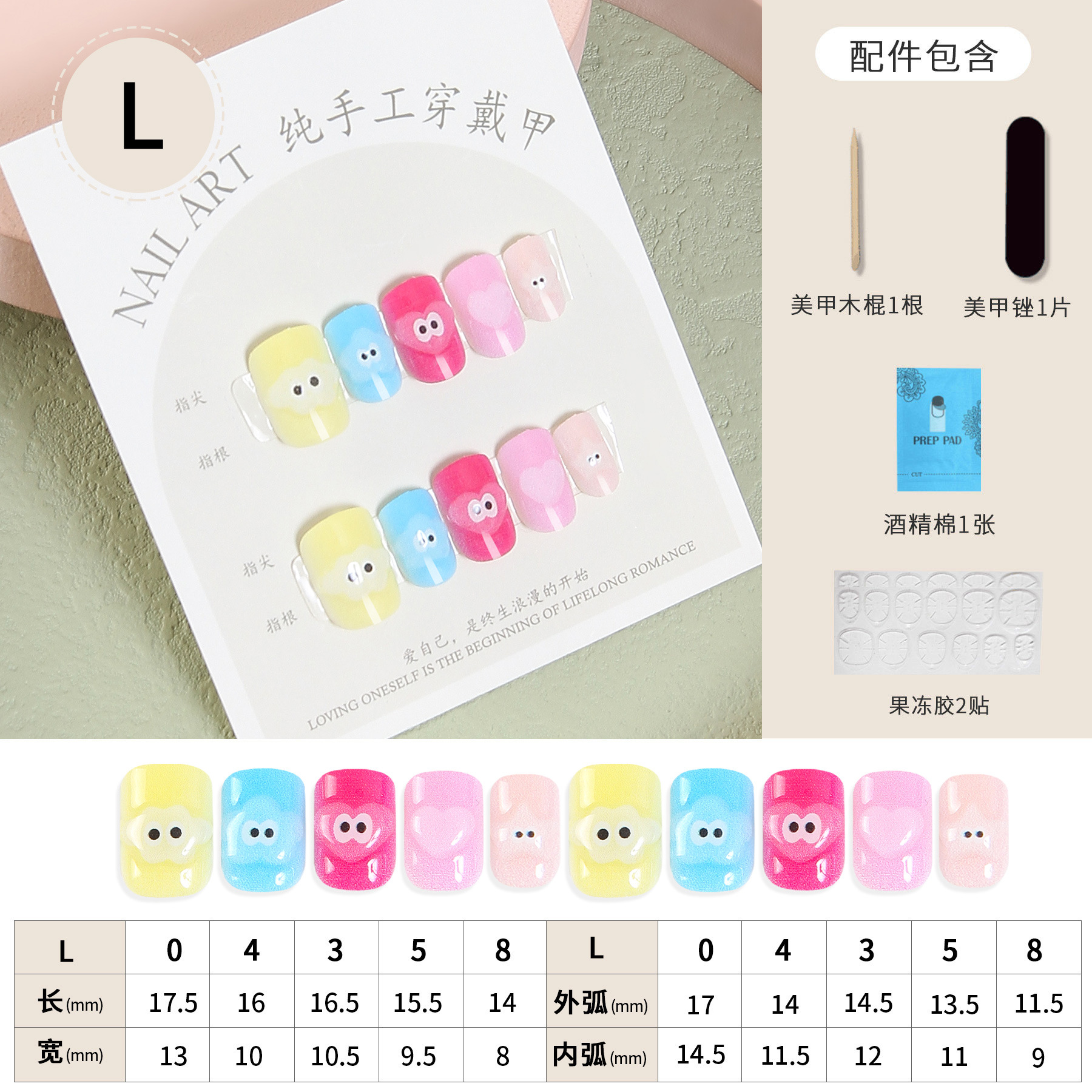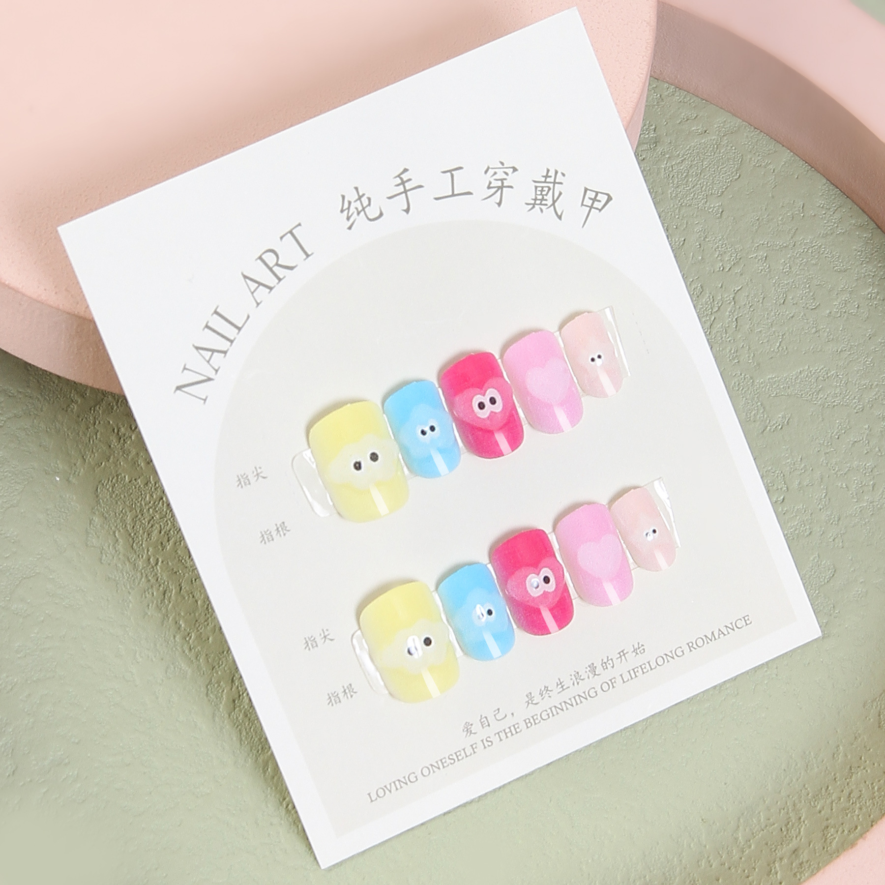 Best-Seller on Douyin Hand-Worn Armor Cute Japanese Style Small and Short Armor Cartoon Girlish Nail Beauty Crystal Relief Fake Nails