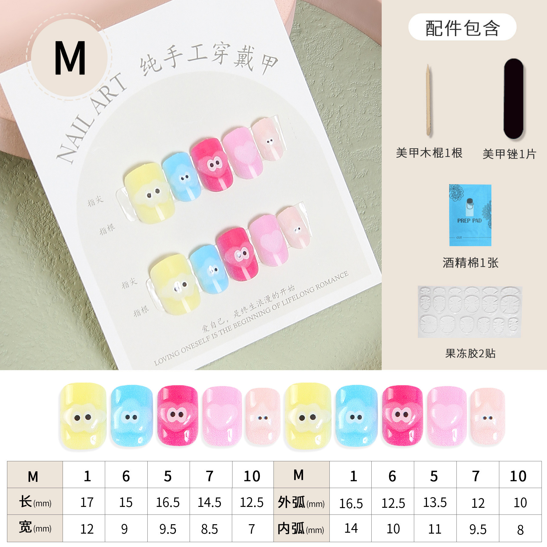Best-Seller on Douyin Hand-Worn Armor Cute Japanese Style Small and Short Armor Cartoon Girlish Nail Beauty Crystal Relief Fake Nails 中文版