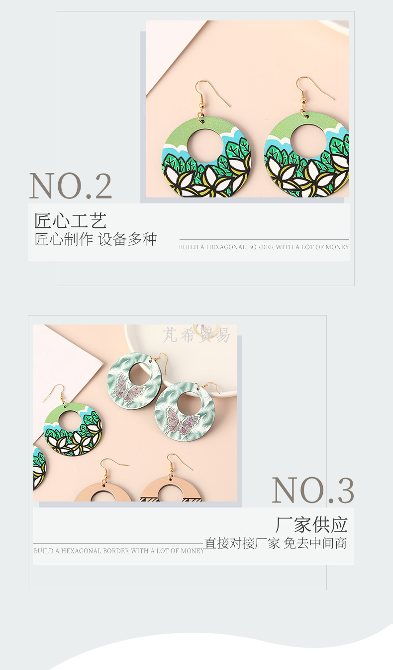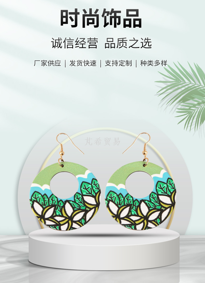 Diy Printed Acrylic Earrings round Pattern Earrings 中文版