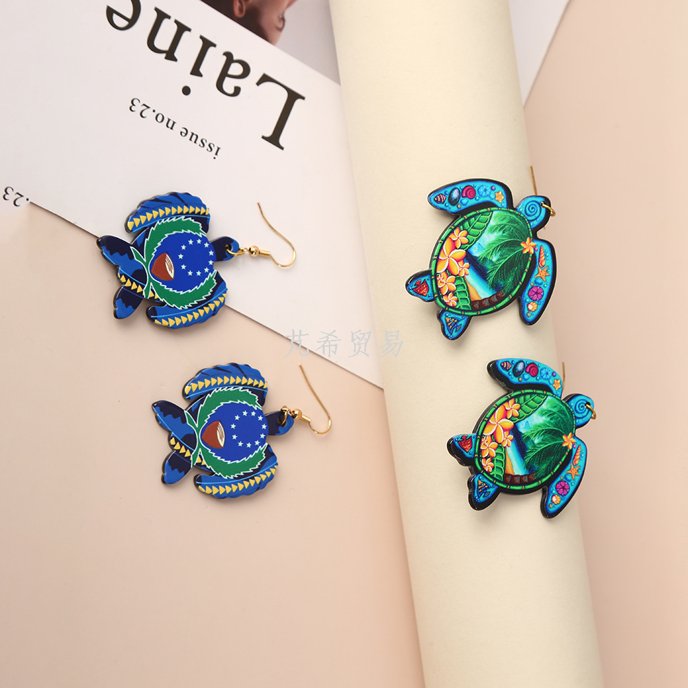 DIY Earrings Style Turtle Ear Hook Hawaii Vacation Style Earrings Green Turtle Beach Travel Jewelry 中文版