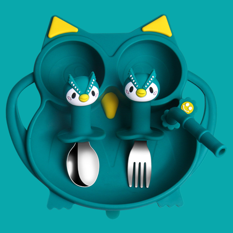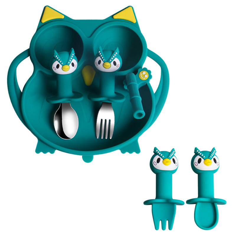 owl silicone dark green spork