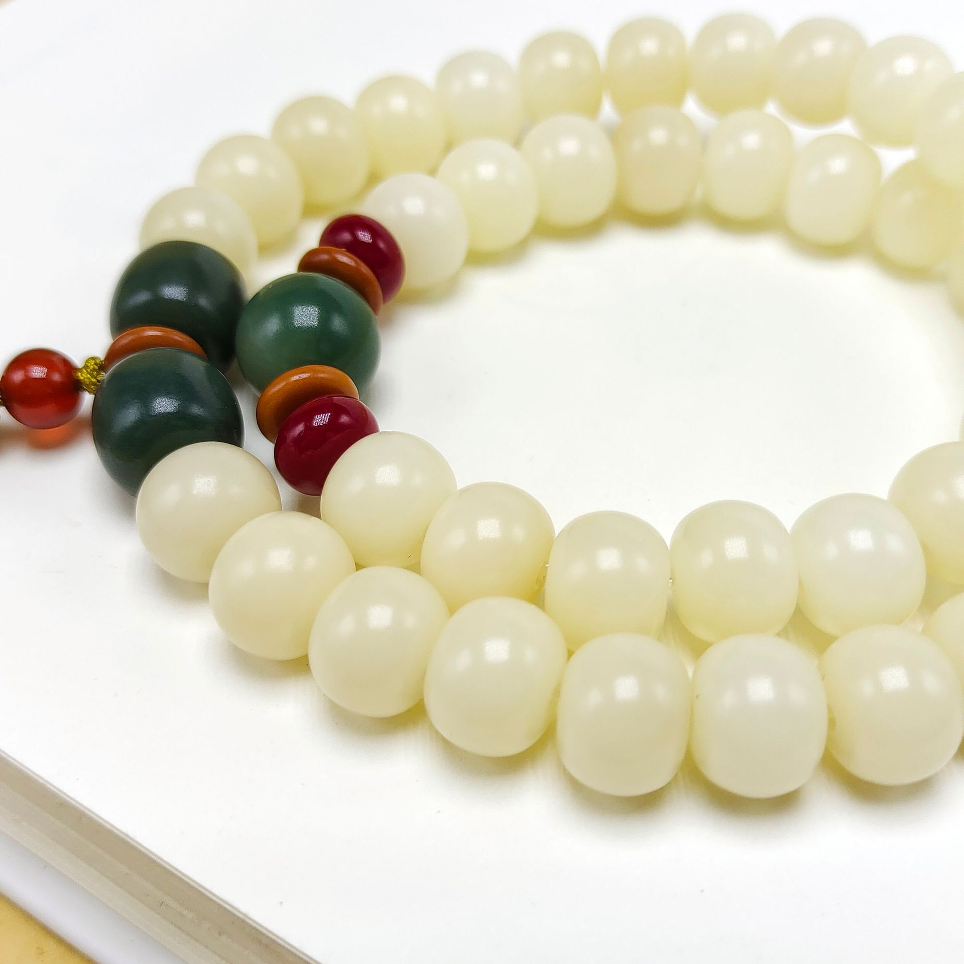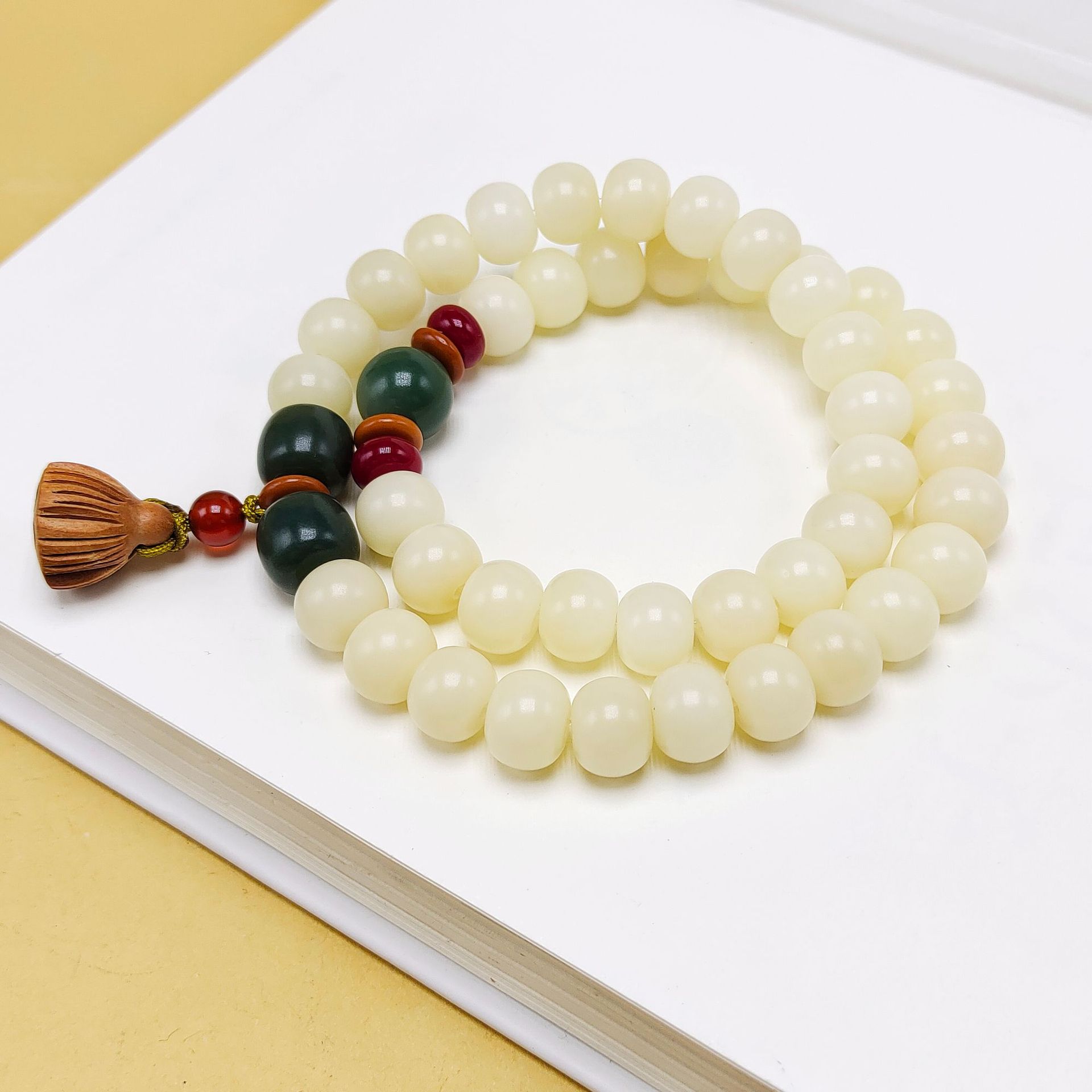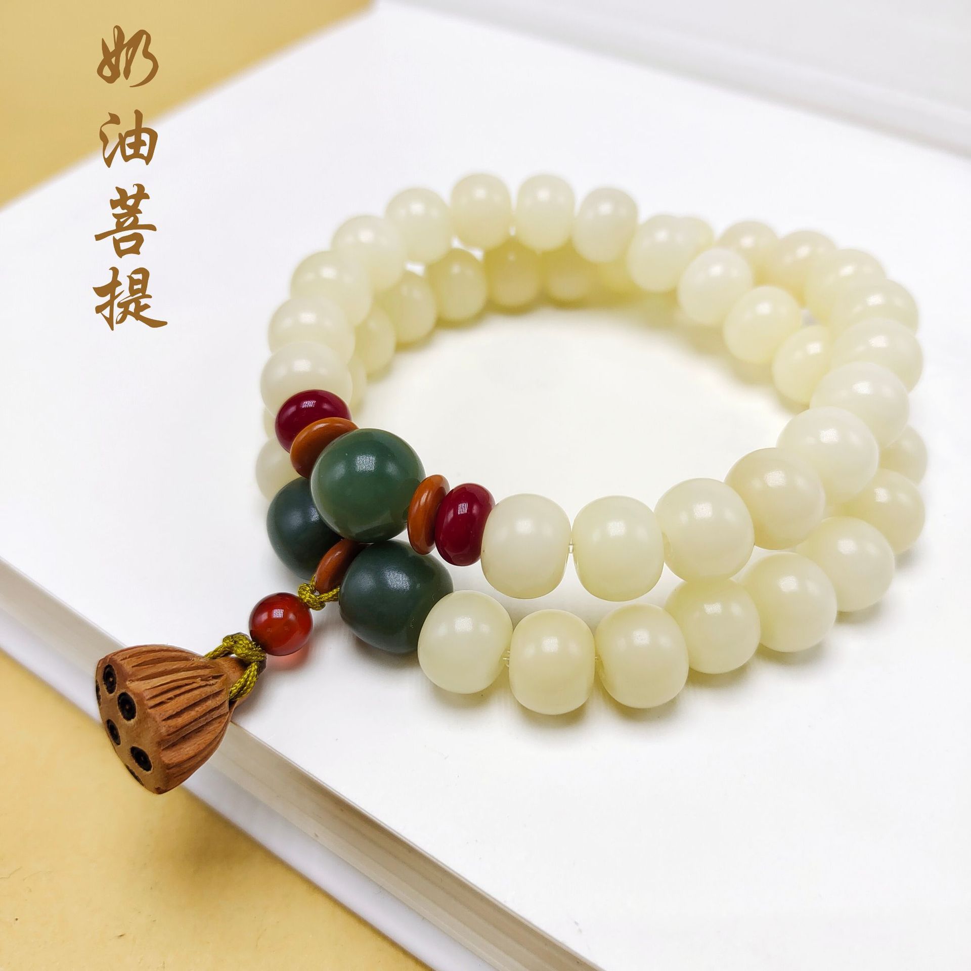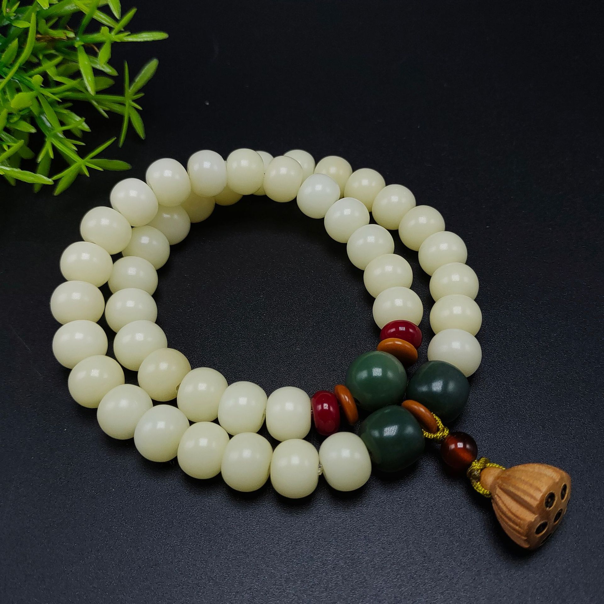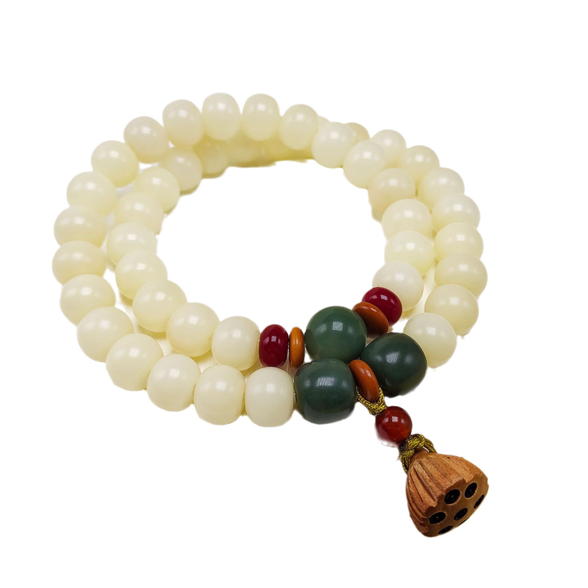 Material: Bodhi seed, red agate round beads, peach wood lotus seed pod