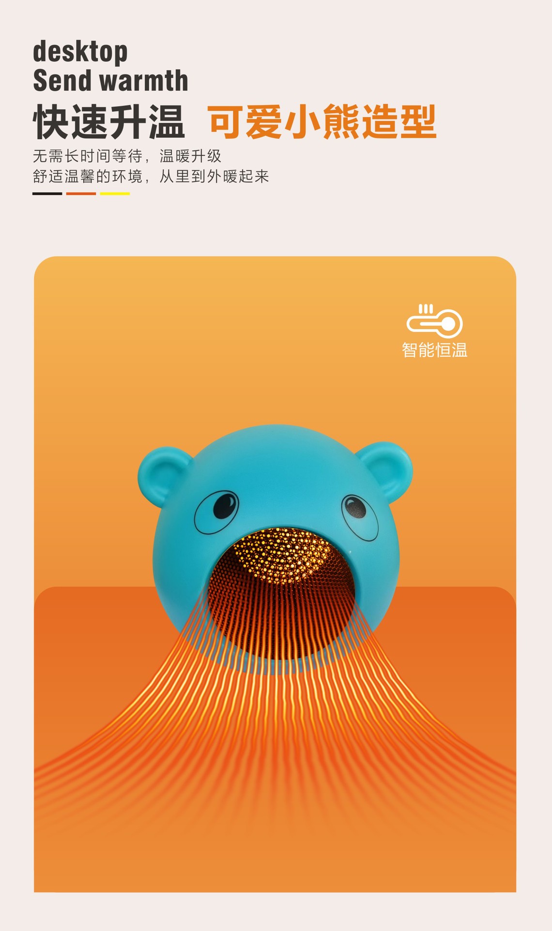 New Student Dormitory Mini Heater Cartoon Bear Warm Air Blower Small Office Electric Heater Air Heater Cross-Border 中文版