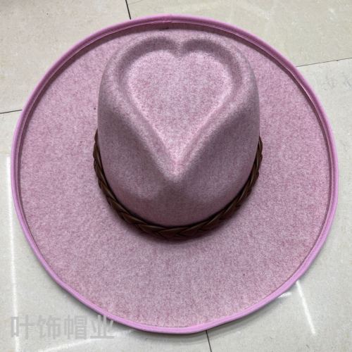 Wool imitation one-piece formed hat, two-color wool love heart cap top, PU twisted decoration belt, color matching woven belt edge, adjustable inner sweatband