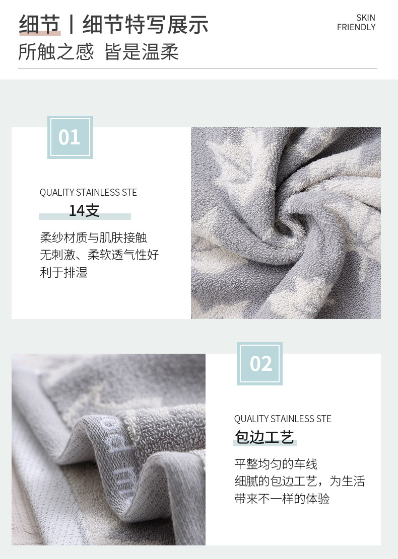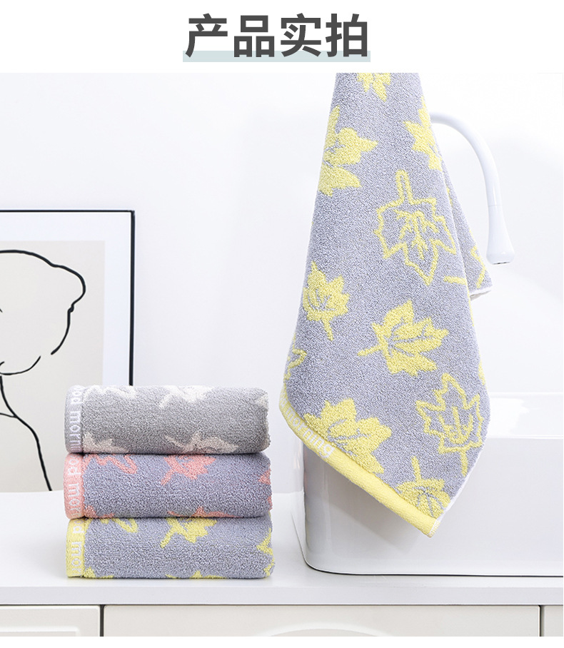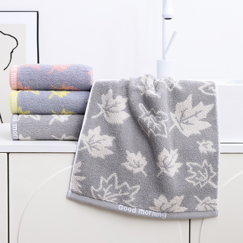Factory Wholesaler Super Pure Cotton Maple Leaf Cotton Towel Household Daily Yarn-Dyed Jacquard Cotton Face Towel Foreign Trade