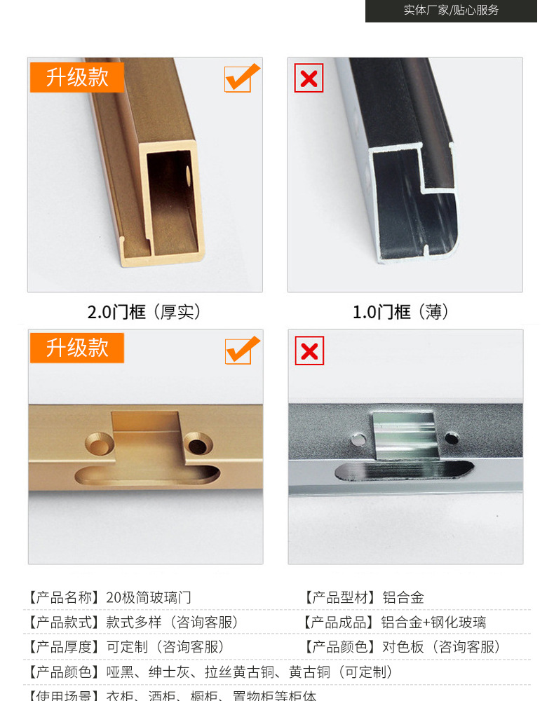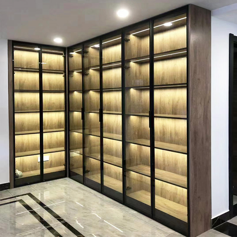 Factory Direct Sales 20 All Aluminum Glass Cabinet Door Wine Cabinet Wardrobe Extremely Narrow Aluminum Alloy Frame Tempered Glass Door Aluminum Material