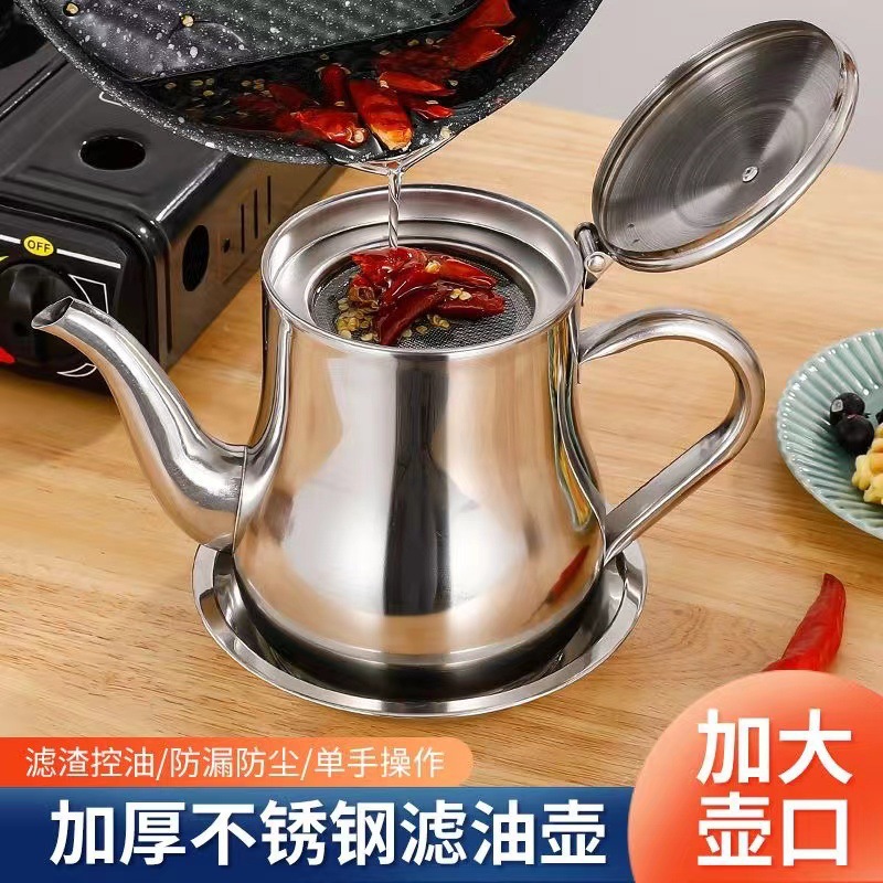 Stainless Steel Oiler Kettle Household Kitchen Oil Residue Separation Filter Tank Leak-Proof Oil Bottle Factory Direct Sales Generation 中文版