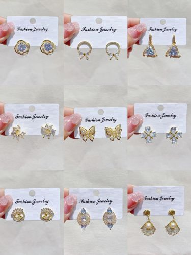 europe, america, japan and south korea cross-border light luxury all-match copper gold-plated zircon butterfly design sense minority all-match earrings collection