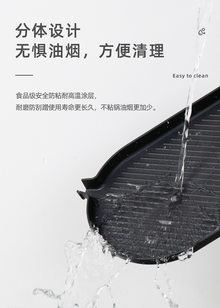 product features: removable baking tray, easy to clean, dual temperature control, infinite adjustment, non-stick finish