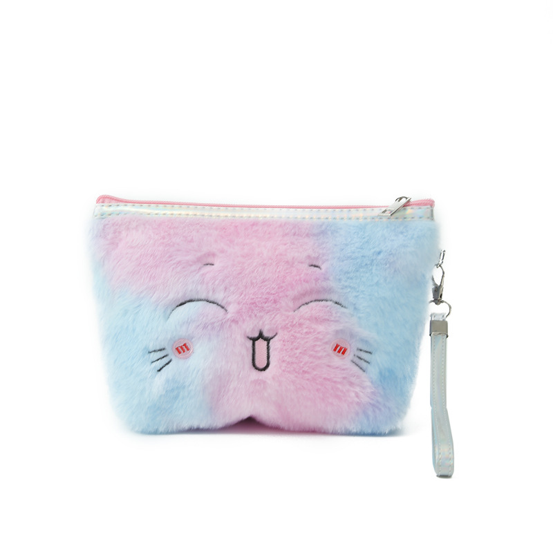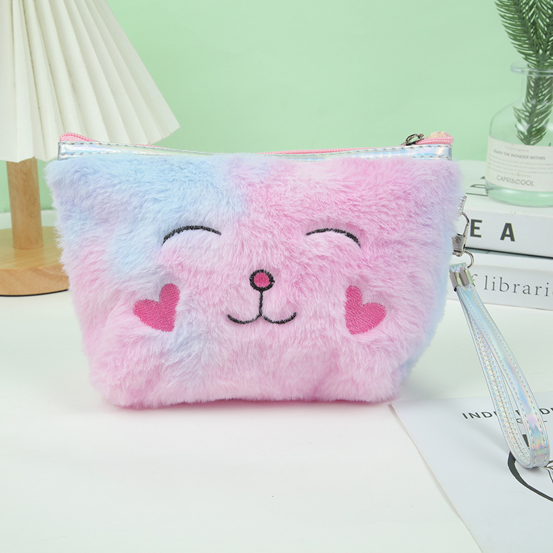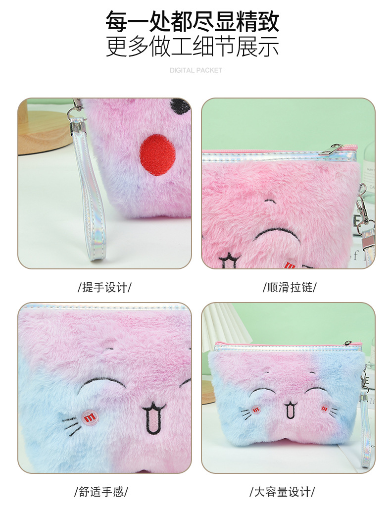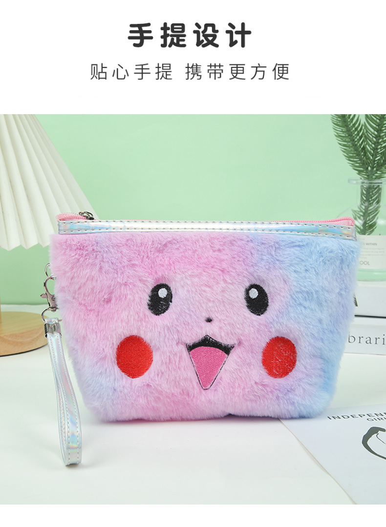 Cute Plush Embroidery Triangle Cosmetic Bag Storage Bag Multifunction Storage Bag Pencil Case Student Storage Stationery Case 中文版