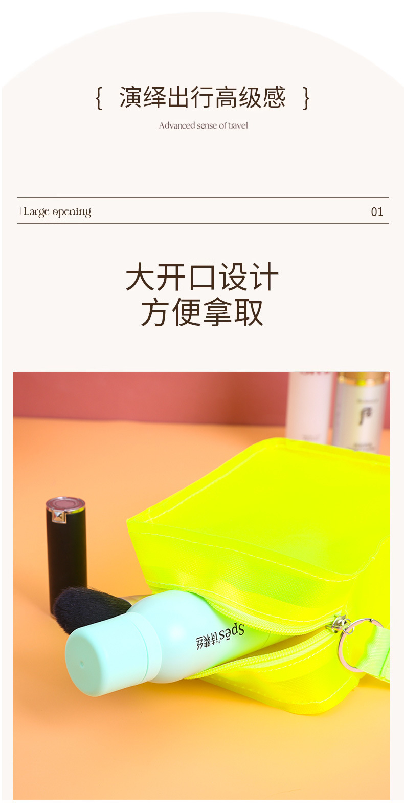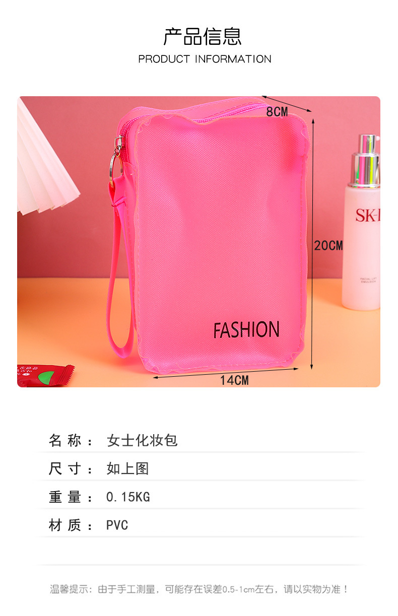 Cosmetic Bag PVC Three-Dimensional Zipper Bag Color Makeup Storage Bag Travel Carrying Case 中文版