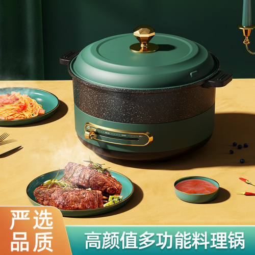 multi-functional cooking pot electric chafing dish household barbecue plate electric roaster pan barbecue frying roast and instant boil 2-in-1 electric caldron breakfast 中文版