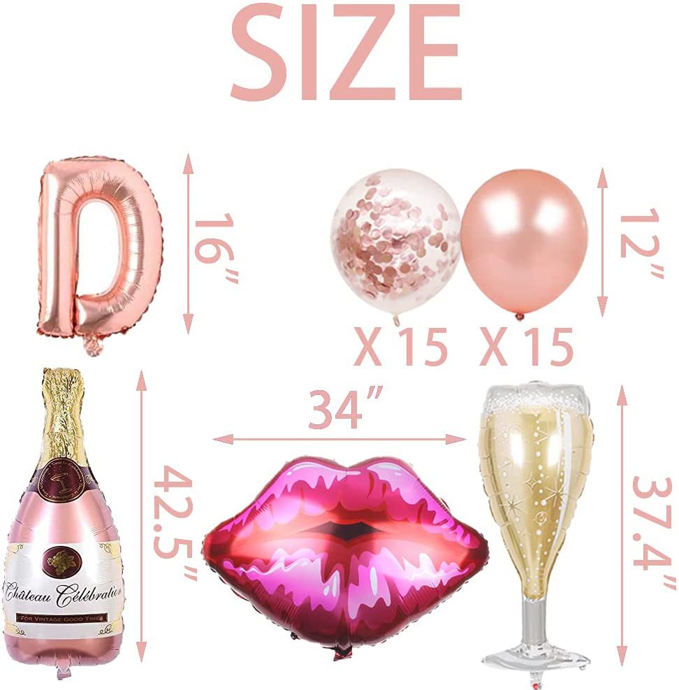 1 set of dirty letters + 30 inch digital 30 + 1 bottle of wine + 1 glass + 1 lip + 15 latex + 15 sequins + 1 ribbon + 1 straw