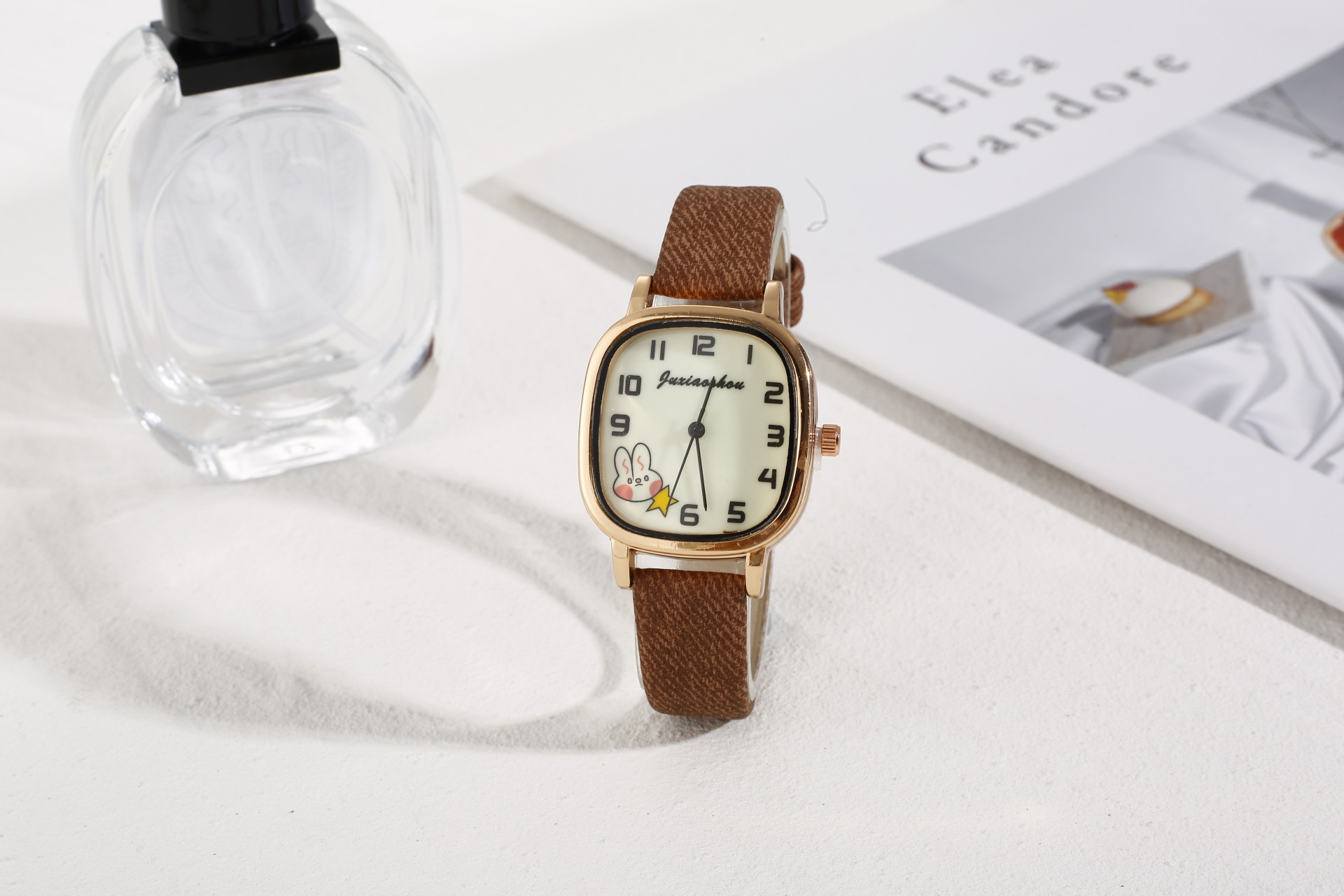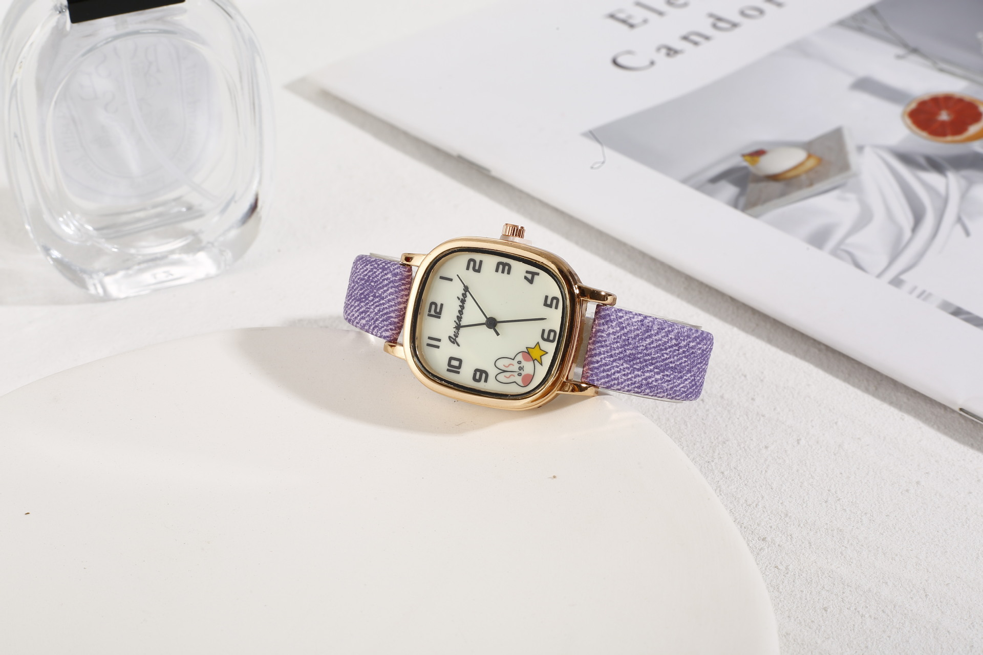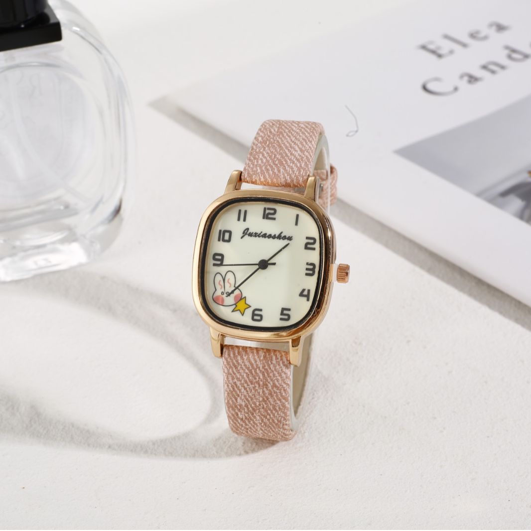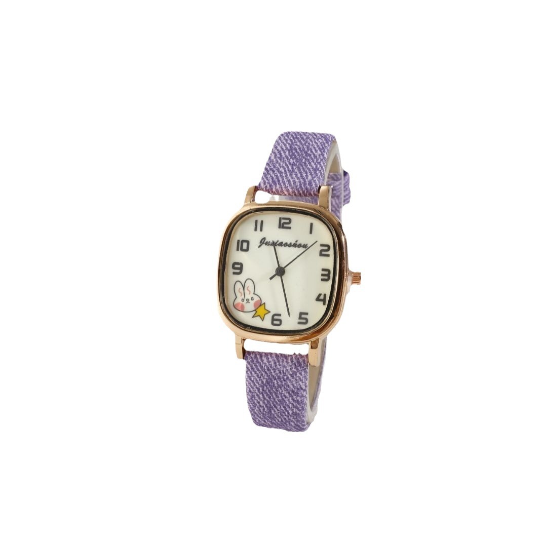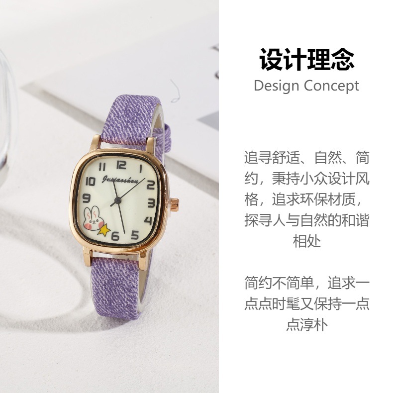 New Foreign Trade Denim Belt Minority Simple Square Cartoon Rabbit Luminous Watch Male and Female Students Table Quartz Watch