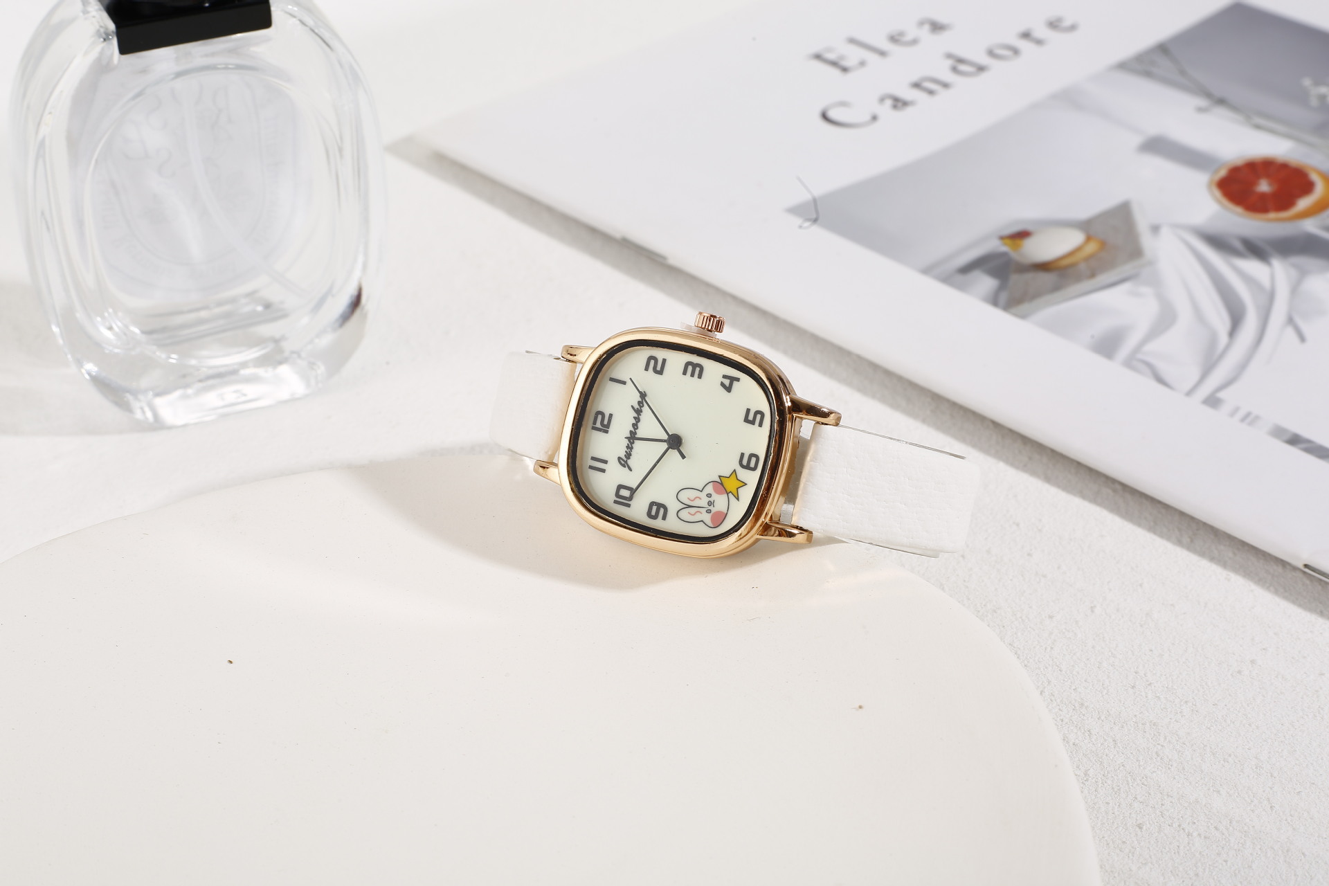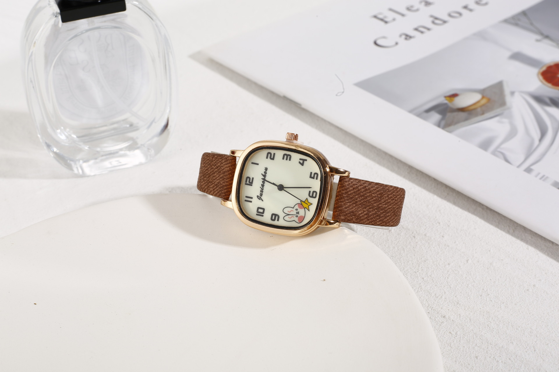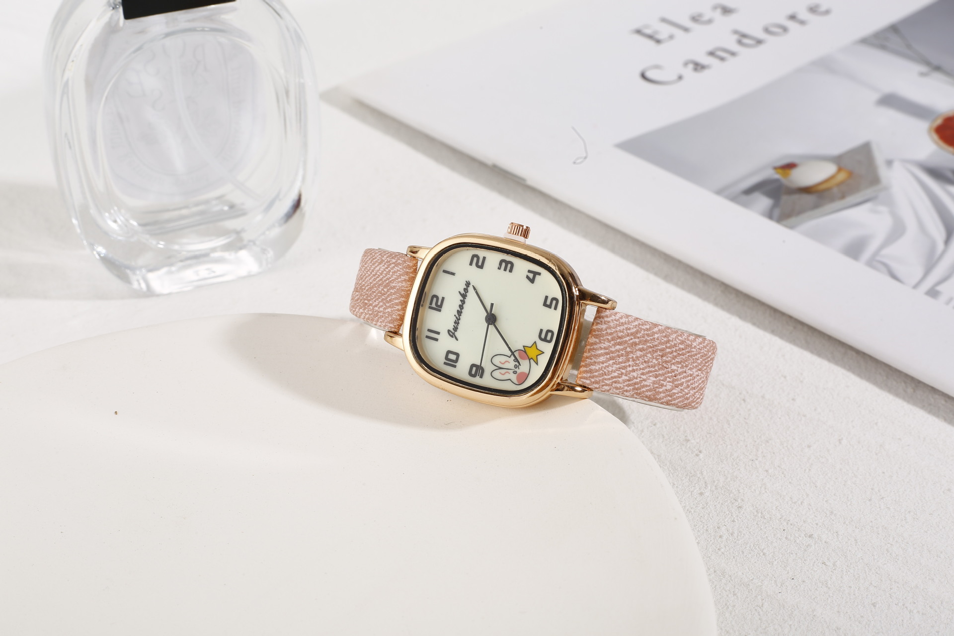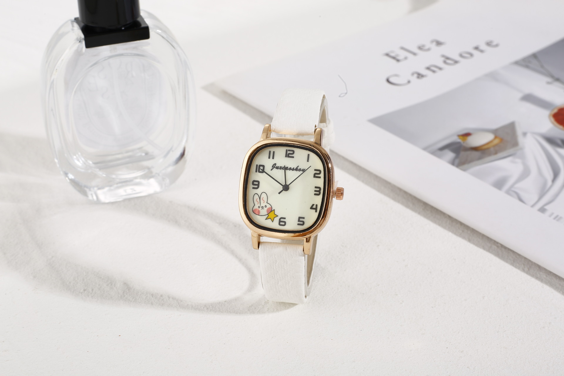 New Foreign Trade Denim Belt Minority Simple Square Cartoon Rabbit Luminous Watch Male and Female Students Table Quartz Watch
