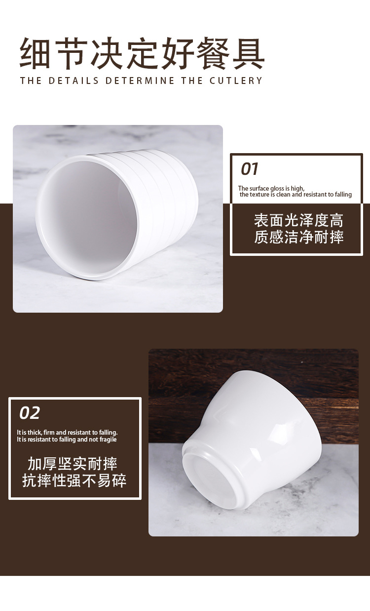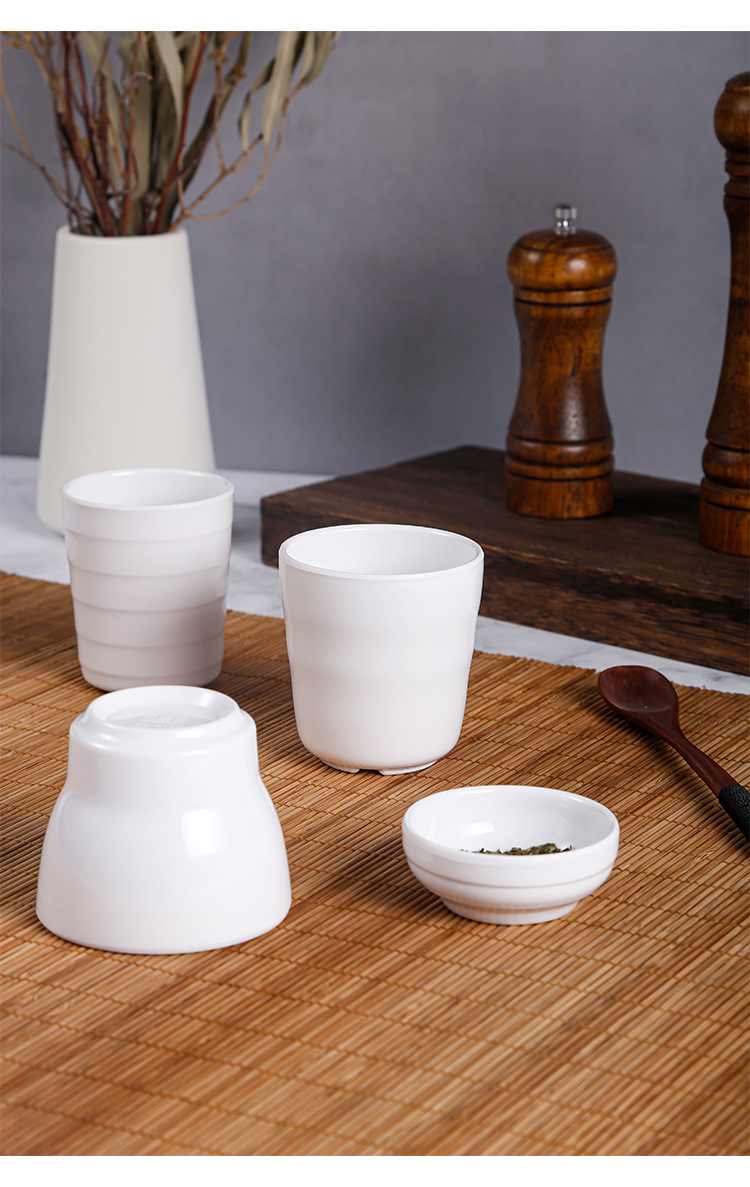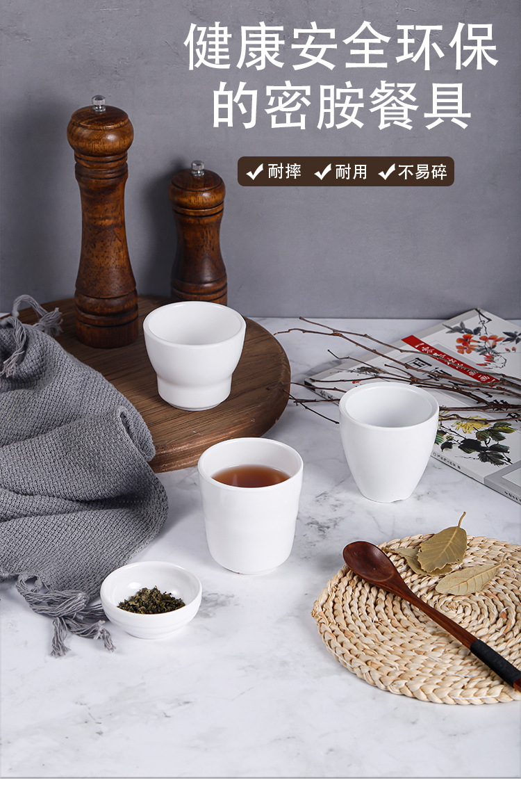 a5 melamine white imitation porcelain table tea cup cup hotel restaurant hot pot restaurant commercial plastic drop-resistant horizontal pattern water cup 中文版