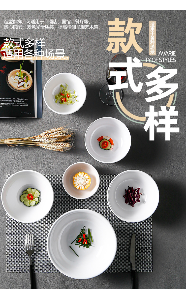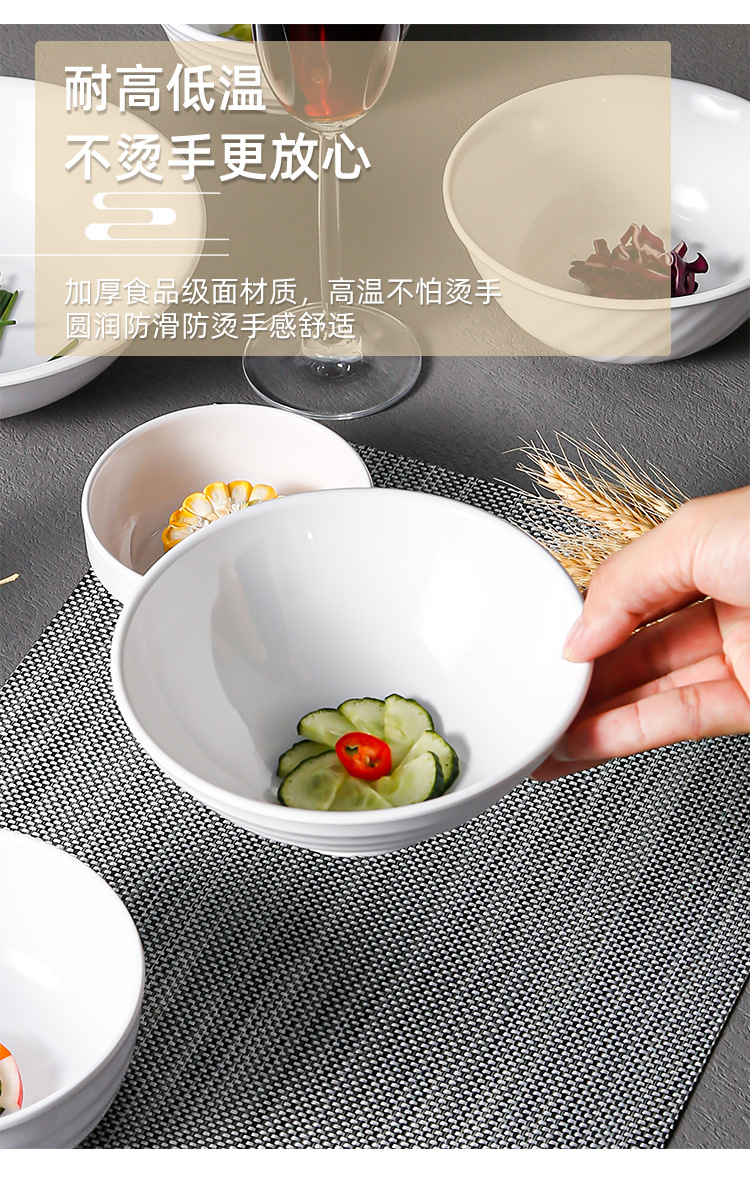 white melamine medium soup bowl chopsticks bowl restaurant breakfast shop commercial imitation porcelain plastic twill straight mouth sugar bowl wholesale