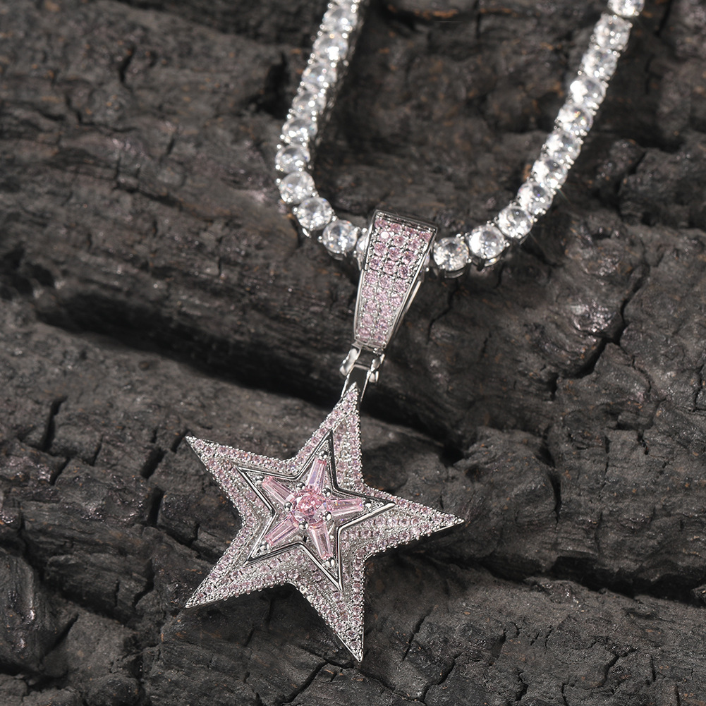 New European and American Style Hip Hop Diamond Rotating Five-Pointed Star Pendant Necklace Amazon Hot Product Street Trend Ornament