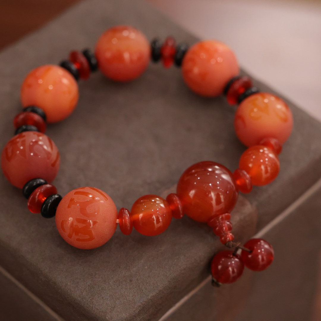 18mm six-word mantra red agate spacer