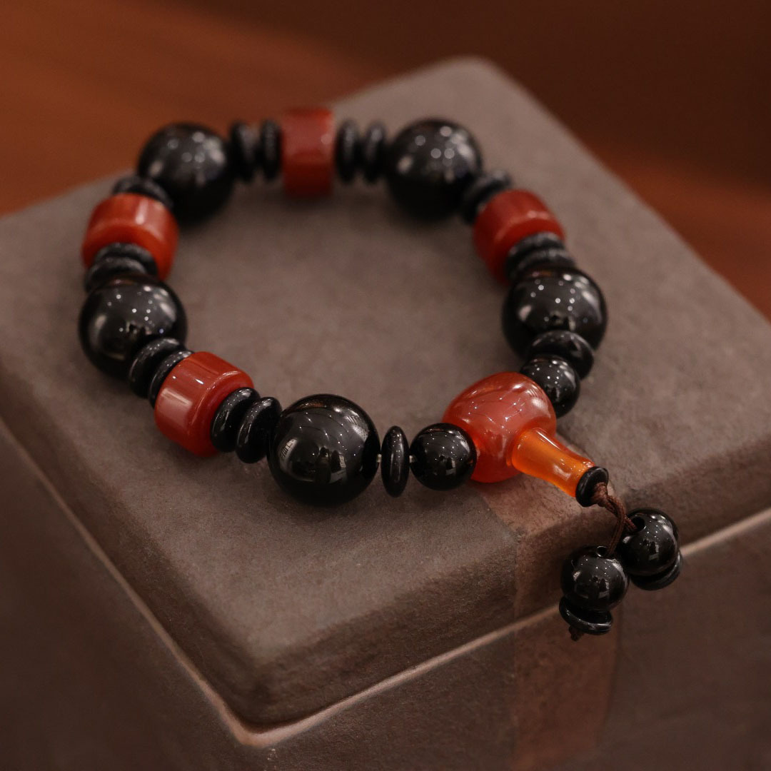 16mm black agate red agate spacer bracelet