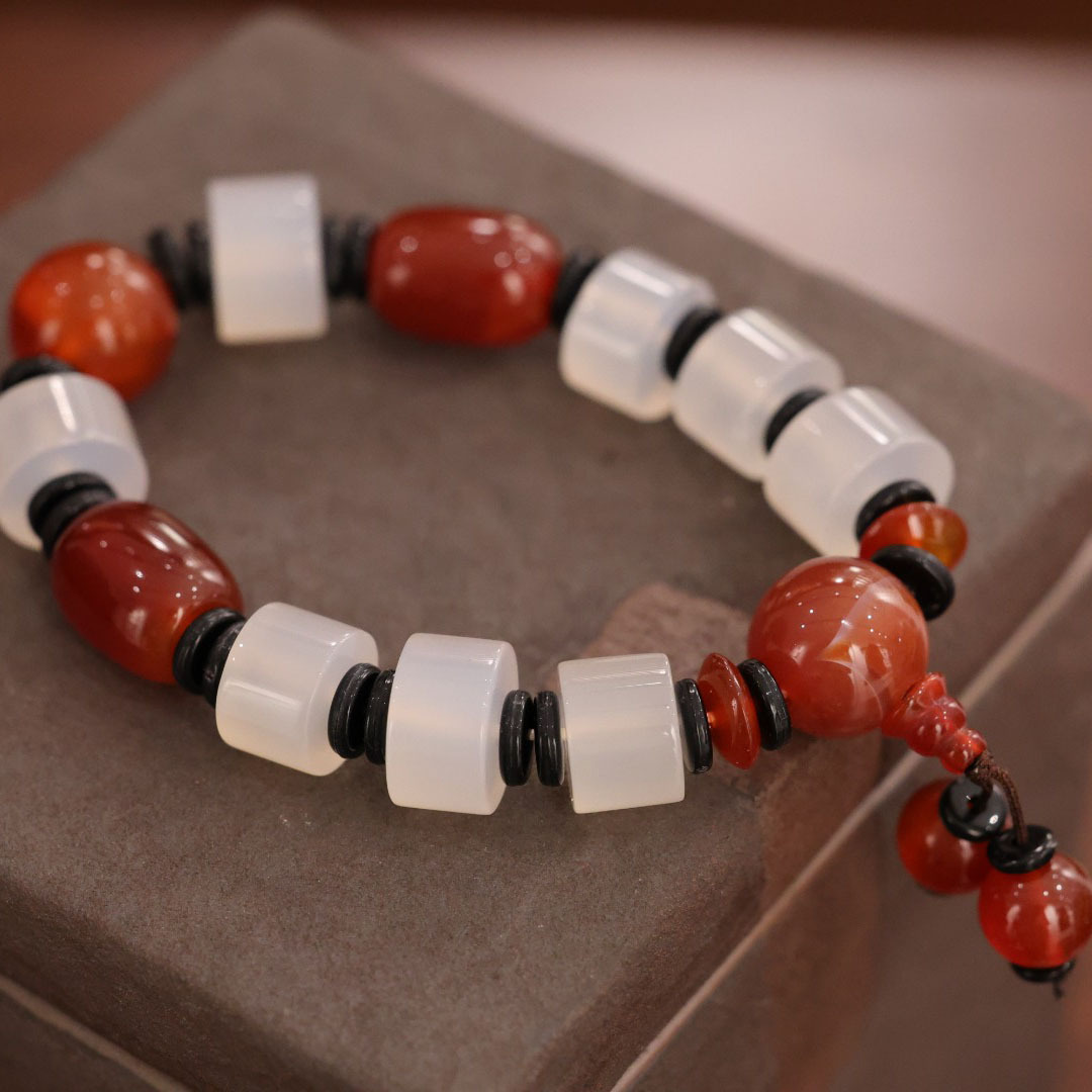 8 * 14mm white agate spacer beads red agate barrel shaped bead bracelet