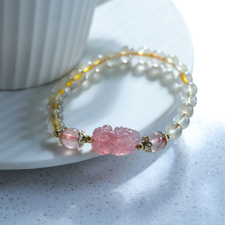 6mm gold rutilated quartz strawberry quartz women's style