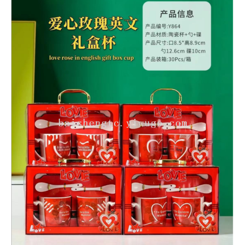 Mother's Day, Valentine's Day ceramic cups, color box packaging, a case of 36 boxes, two cups, two spoons, two lids, a variety of styles, welcome to consult!