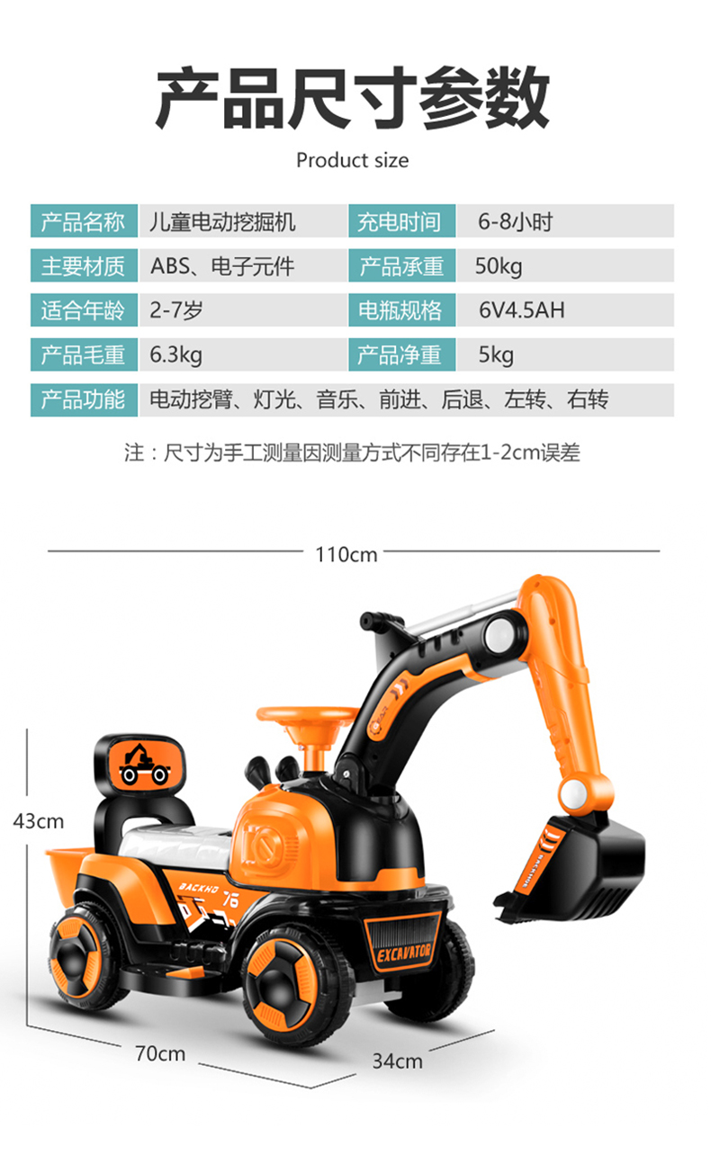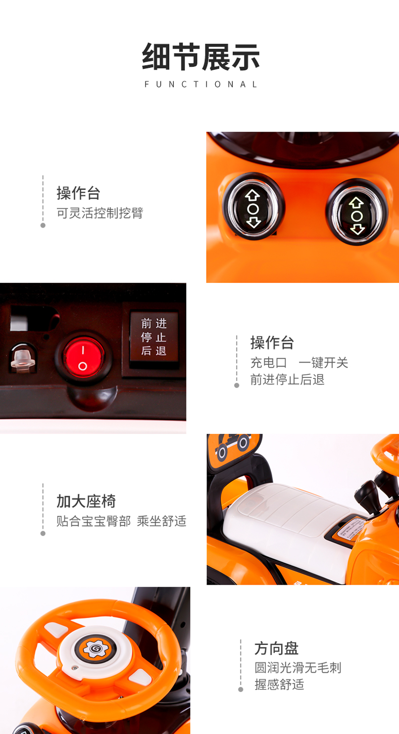 orange electric/sliding dual-use + electric digging arm + music light + 7a large battery
