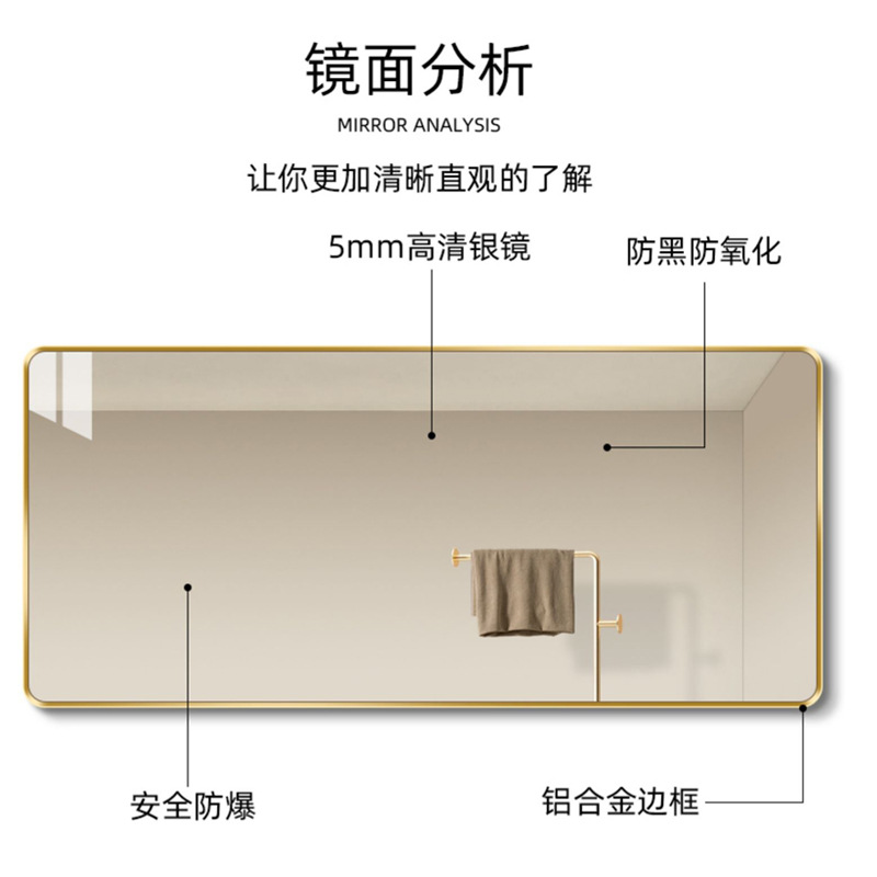aluminum alloy bathroom mirror bathroom toilet bathroom mirror wall-mounted punch-free wall-mounted self-paste square mirror