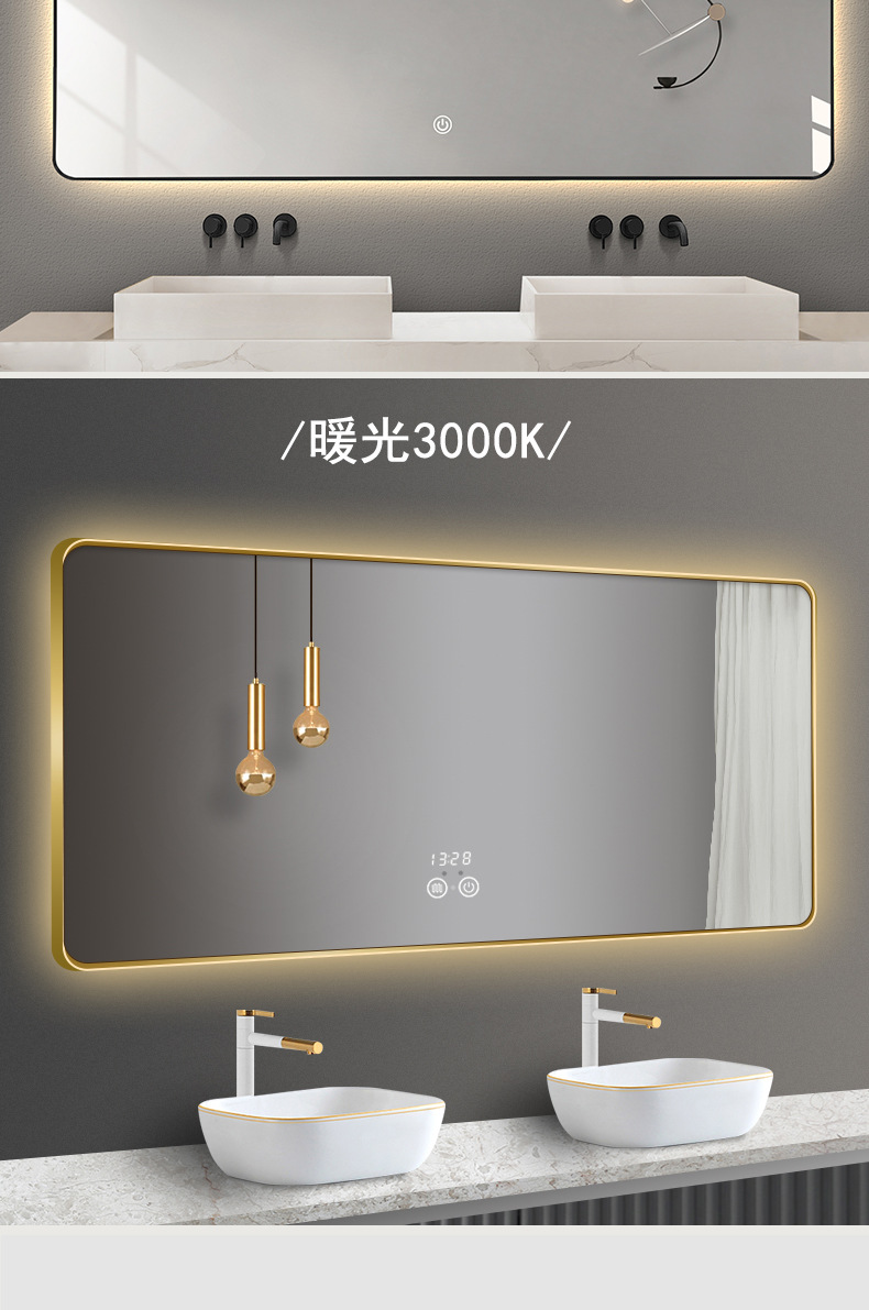 smart bathroom mirror with light aluminum alloy frame bathroom anti-fog wall hanging bathroom led luminous mirror touch screen