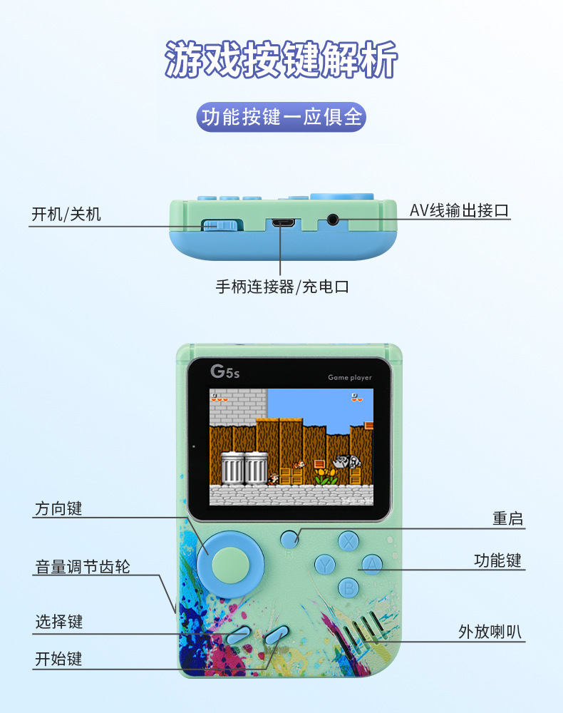 internet celebrity mini g5s classic handheld game console 500-in-one children's nostalgia retro single and double play student game