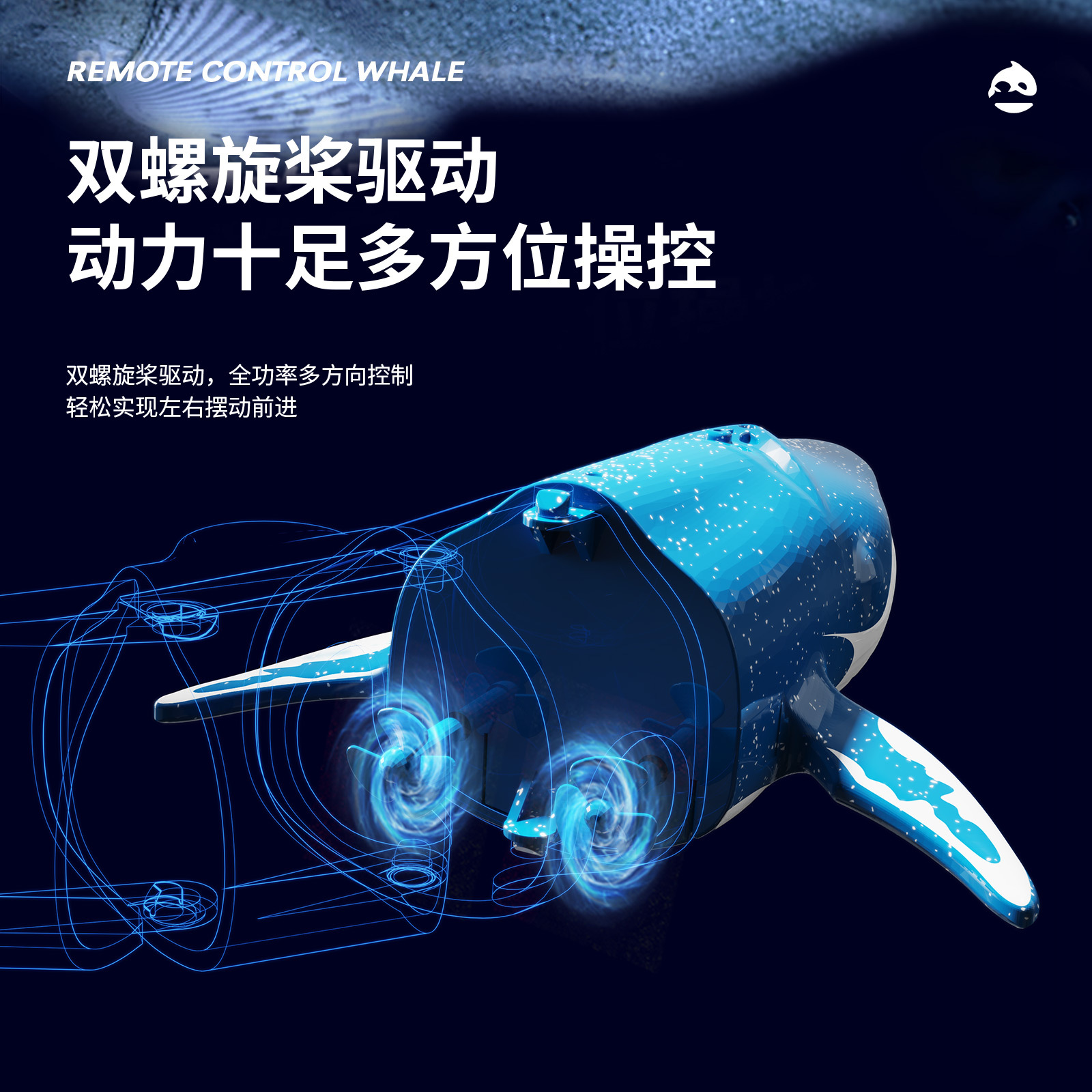 Forward, Left, Right Dive down, and when you surface, blast a stream of water. Advanced waterproofing, off-water power cutoff, and a simulation that feels like a real whale. |