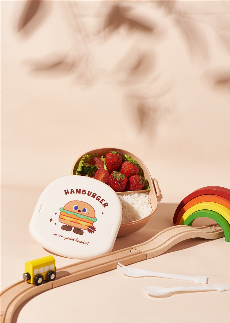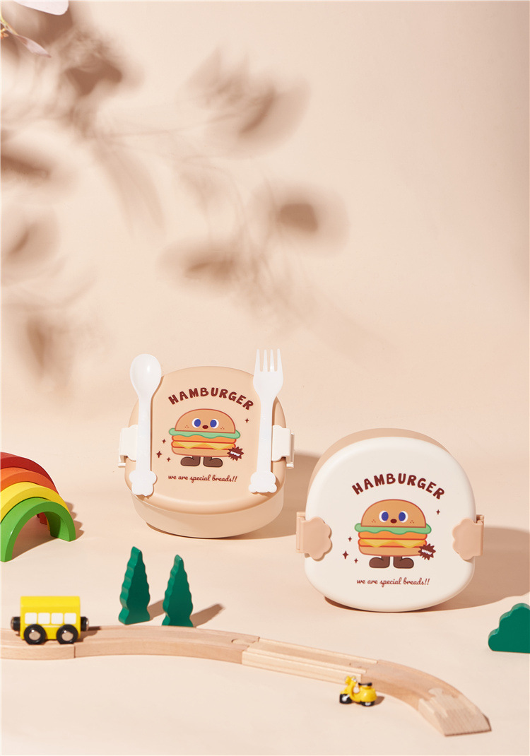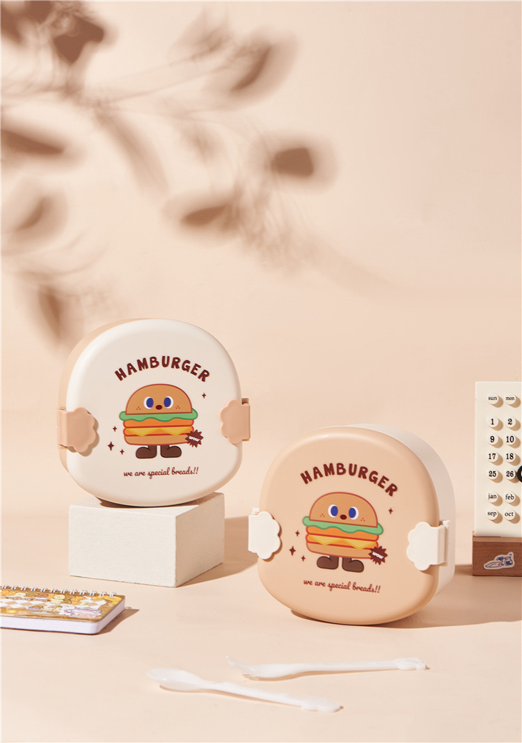 khaki cover hamburger lunch box (get spoon fork free)