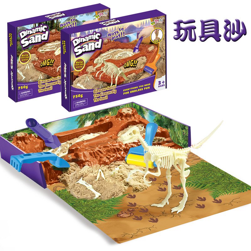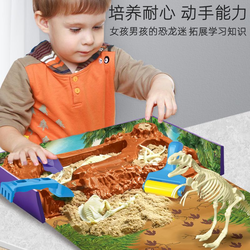 Cross-Border Children's Archaeological Dinosaur Sandbelt Sand Table Boy Space Toy Sand Set Magic Rubber Colorful Mud Toys 中文版